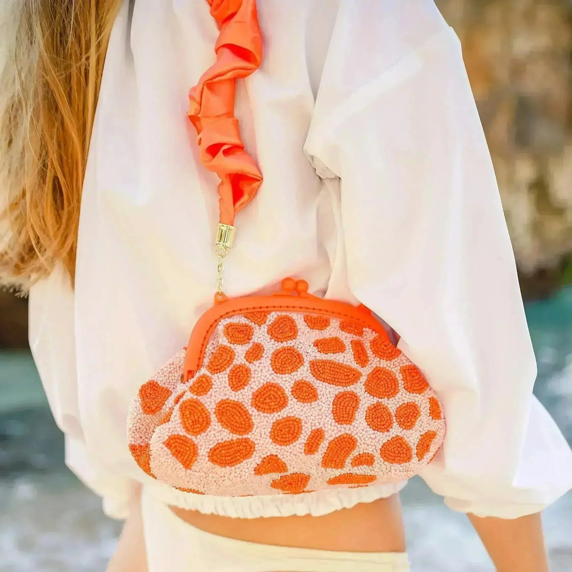 ARNOLDI PEACHPUFF Hand-beaded Clutch Bag In Orange & Peach