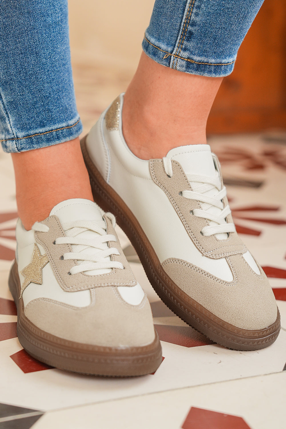 Avani Shimmer Star Patch Lace up Retro Flattie