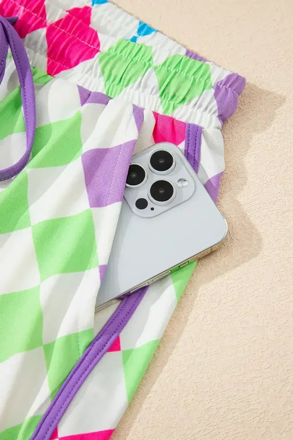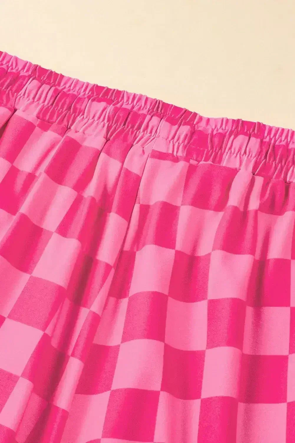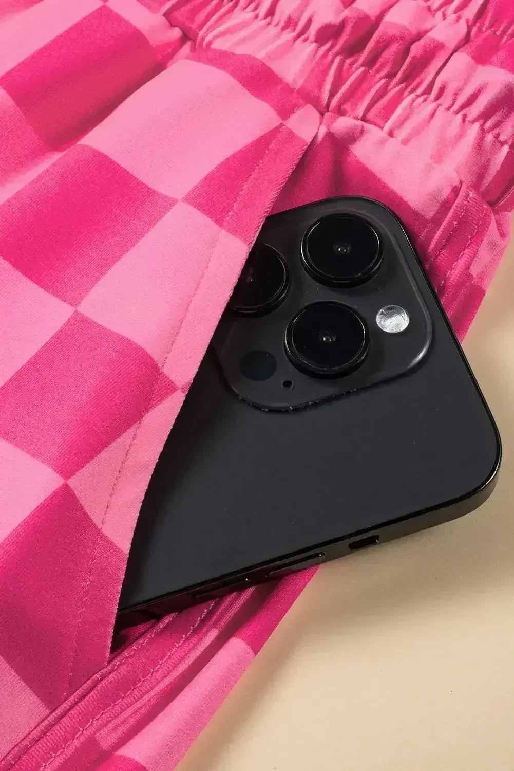Black Checkered Drawstring Elastic Waist Casual Shorts