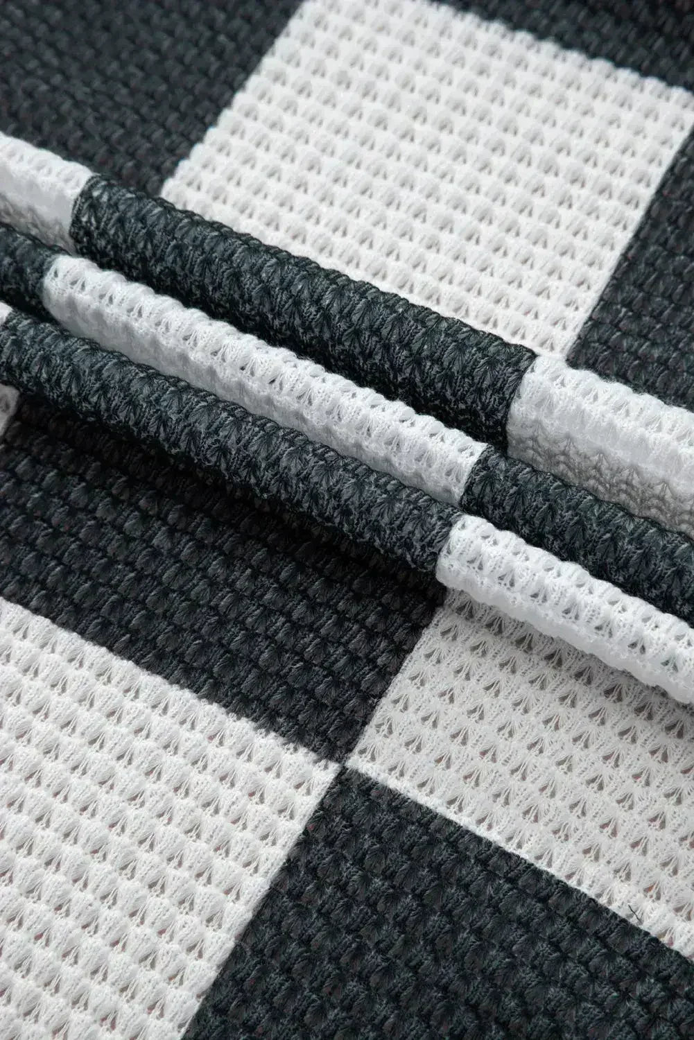 Black Checkered Waffle Knit Thumbhole Open Front Cardigan