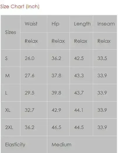 | Sizes | Waist | Hip | Length | Inseam |