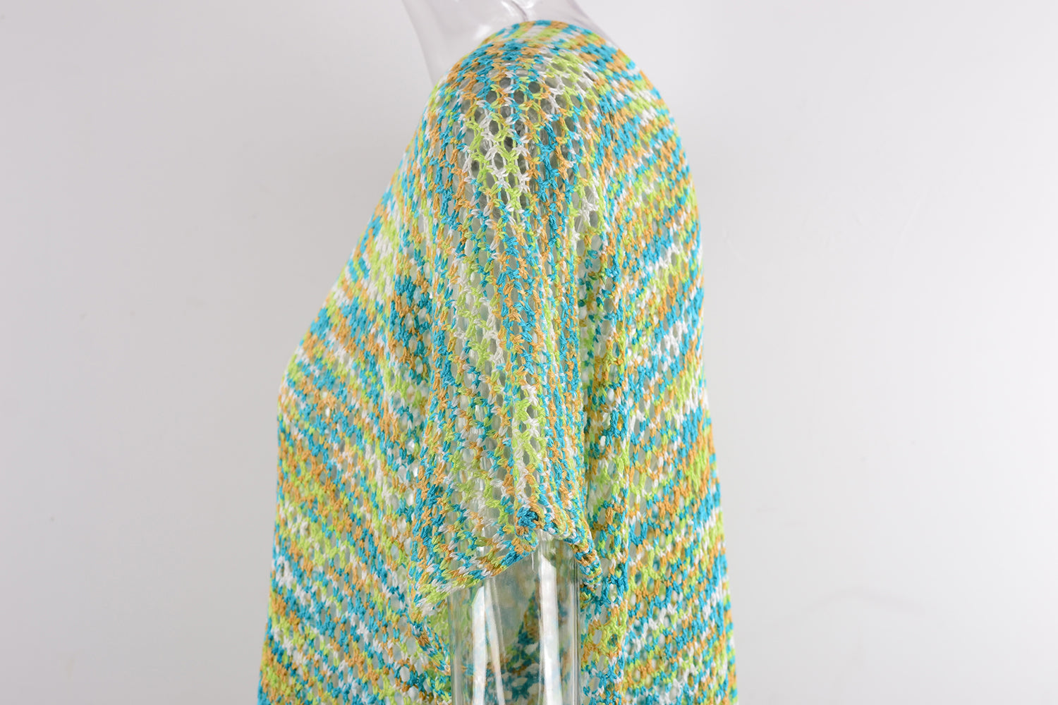Blouse Summer Rainbow Stitching Hollow Out Cutout Loose Bikini Beach Shirt Knitwear