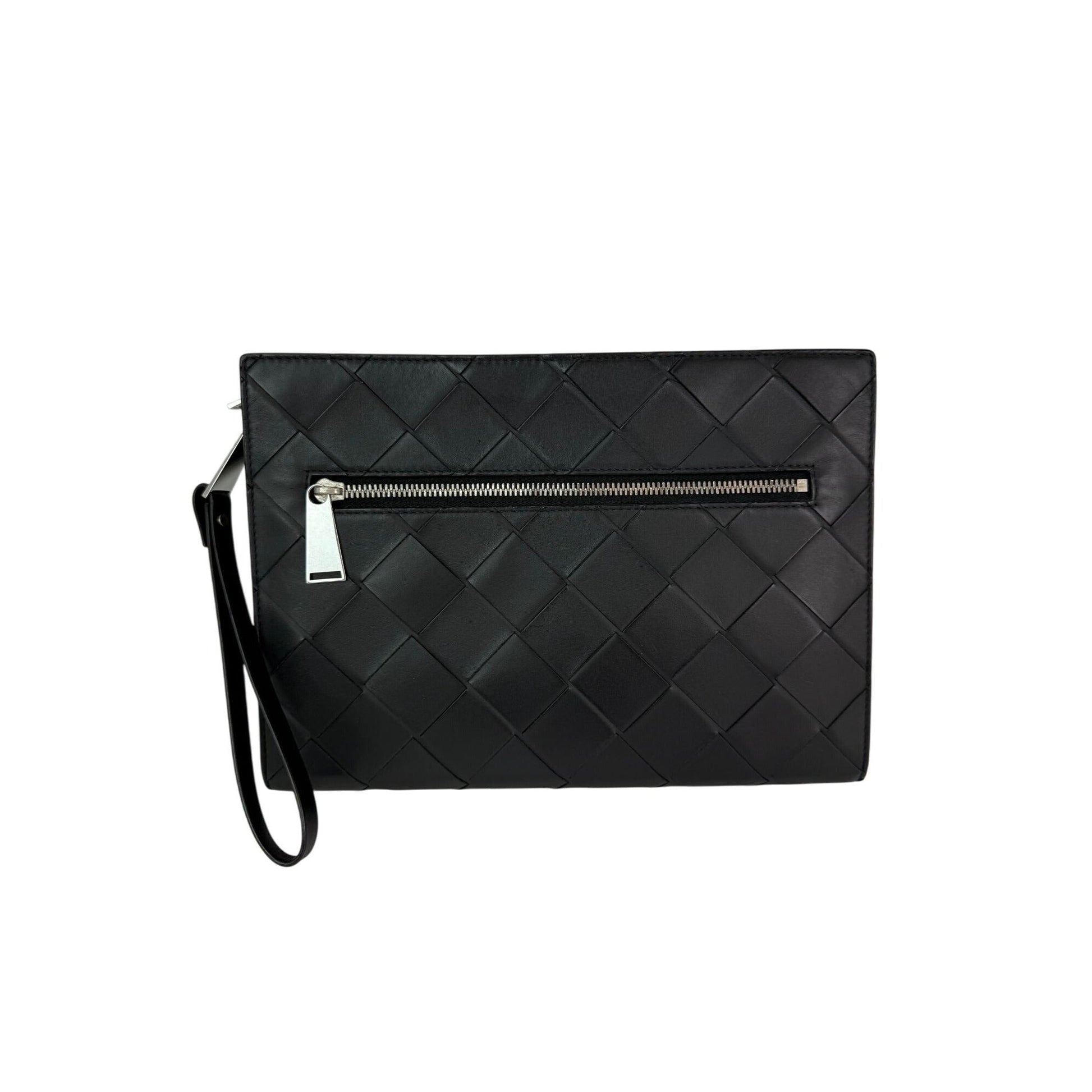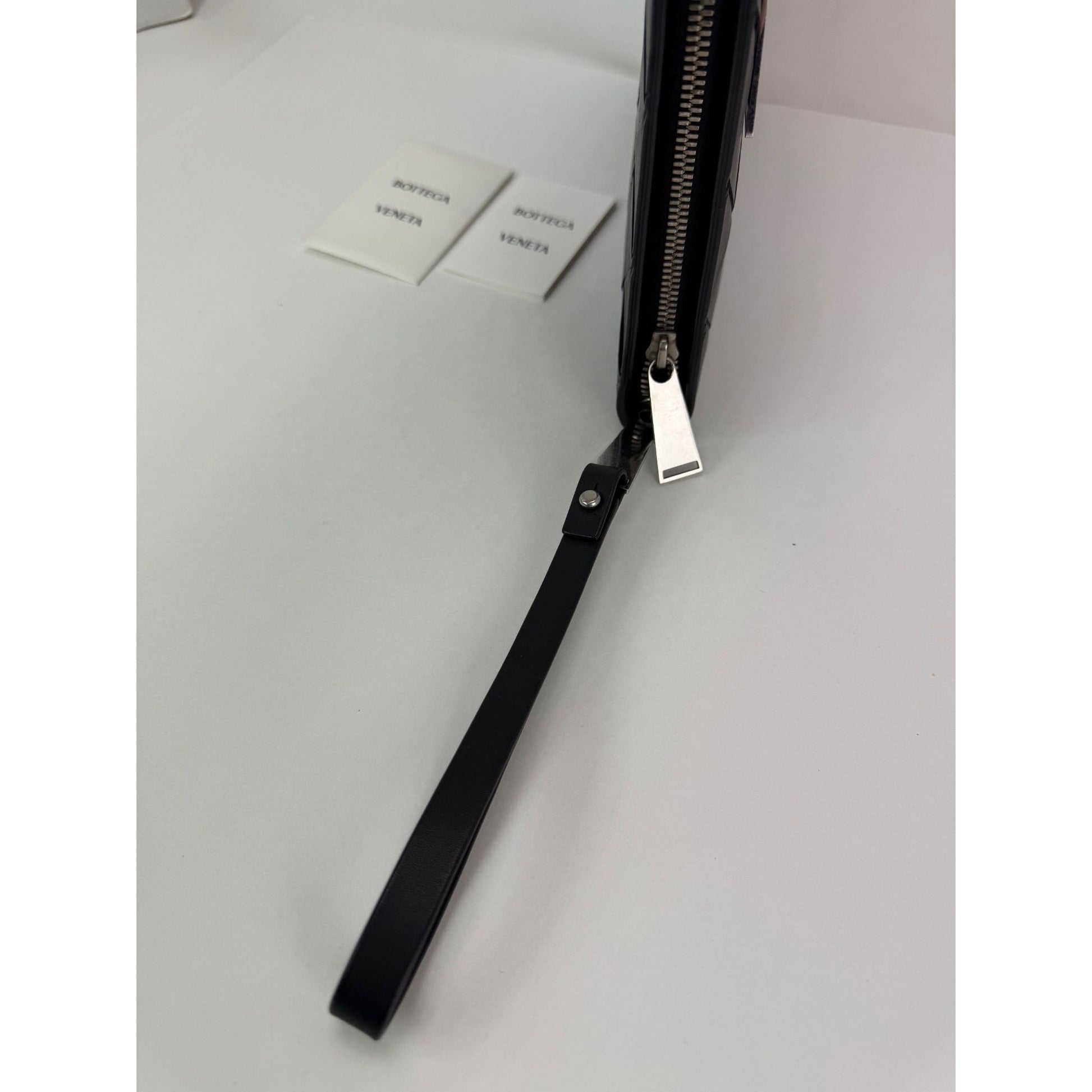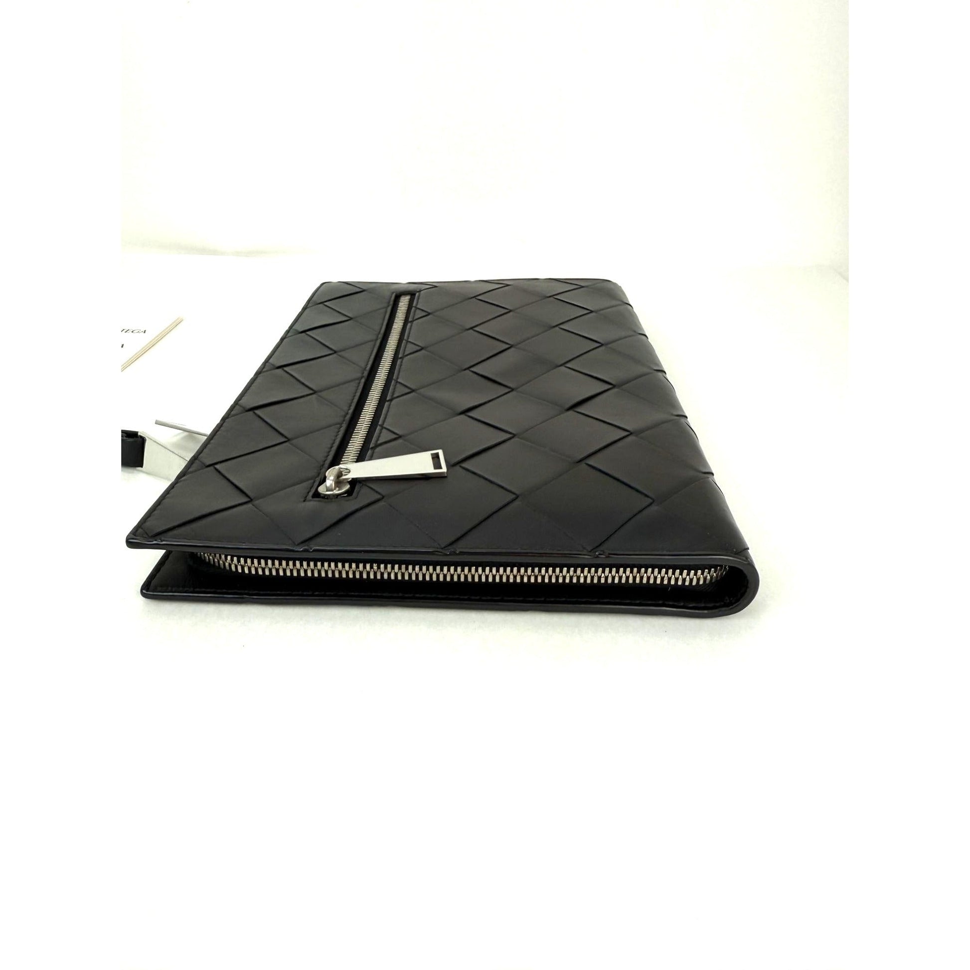 Bottega Veneta Black Leather Maxi Intreciato Document Case Wristlet Clutch Bag