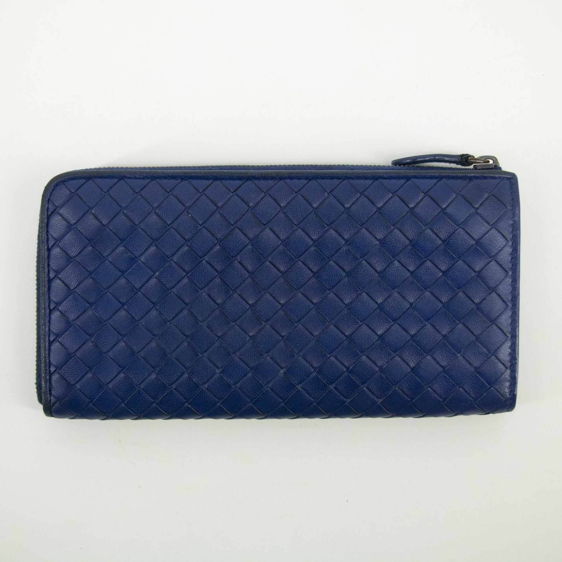 - Bottega Veneta Blue Intrecciato Leather L-shaped Zipper Long Wallet -SKU #2397