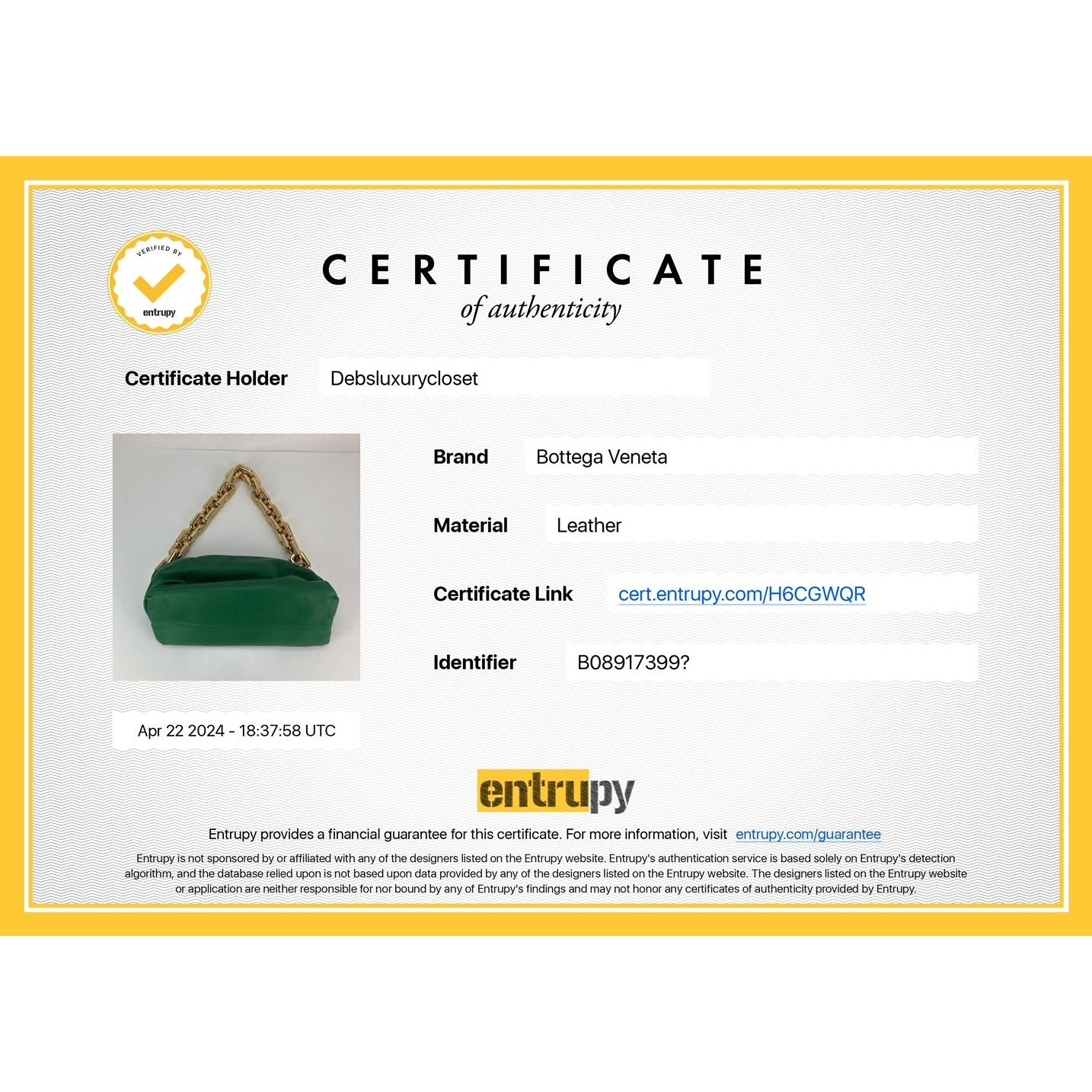 Pre-Owned 100% Authentic Bottega Veneta Green Chain Leather Pouch Bag RATING: A/B...Very Good, well maintained, shows minor signs of wear MATERIAL: leather HANDLE: golden link chain DROP: 10'' COLOR: green CLOSURE: magnetic EXTERIOR: excellent ODOR: no HARDWARE: golden, some faint scratches INTERIOR: green leather, very clean DATE CODE: B089173990 MEASUREMENTS: H 7'' x L12 '' x W 5.5'' INCLUDED: *BV dust bag Please see all pictures to determine final condition, pictures are of actual item ! SHIPPING: will ship same day or next day SKU B673 0424