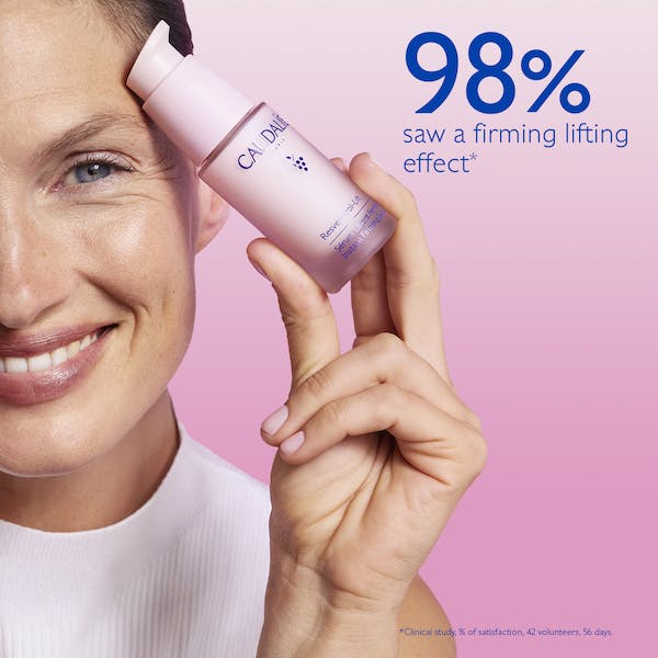 Caudalie Serum should be massaged into areas of loss of firmness and repeated twice a day.