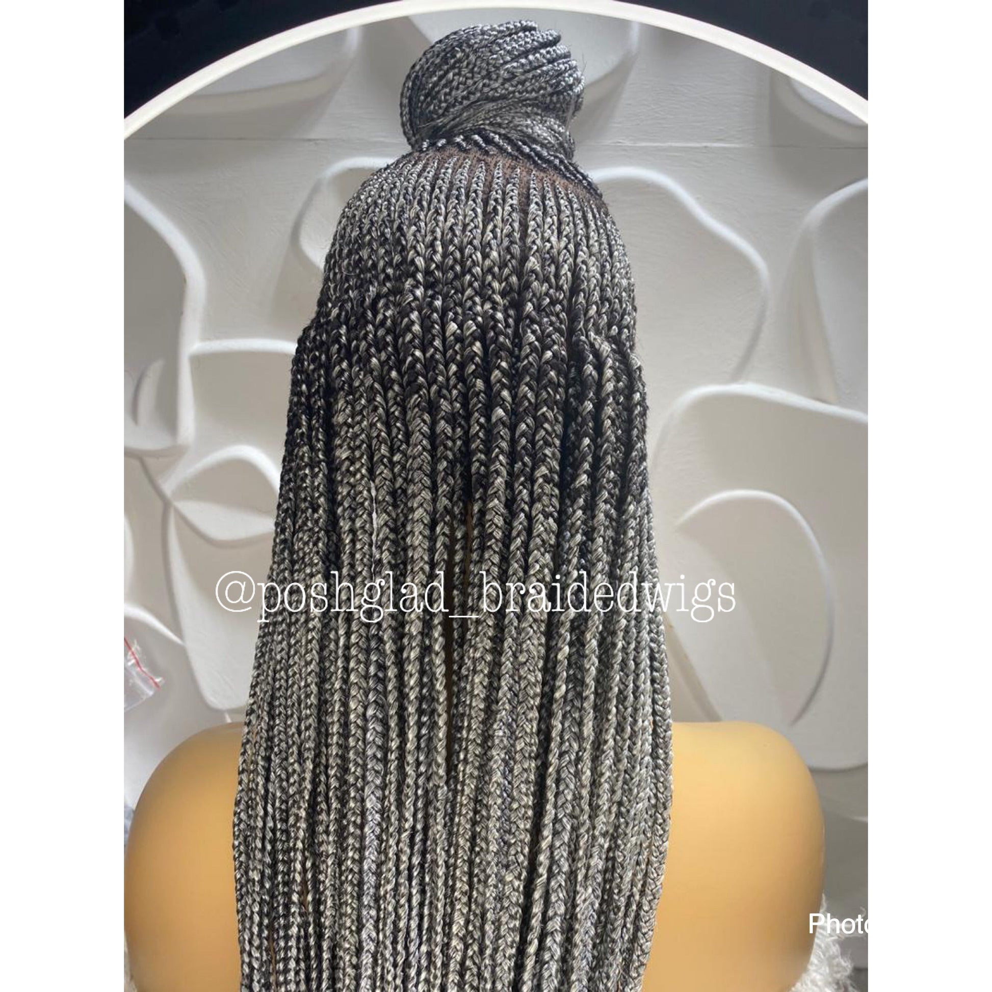 This natural looking custom handmade glueless cornrow braided wig name - Kimora is made with 100% human hair, Swiss full lace & the best kanekalon premium fiber for extra length. This unit and all our full lace wig come with 4 combs, an elastic band and an adjustable strap-on to hold it perfectly in place. We offer premium quality wig that look like a scalp, free shipping and 24/7 customer support. No more sitting down in a salon for 8 hours, like gurrrl no! - get your poshglad braided wig, wear it and go. Study shows that braiding on your natural hair causes long term alopecia, receding hairline, baldness and long term hair cancer. With our wigs you don't have to worry about losing your natural hair.
