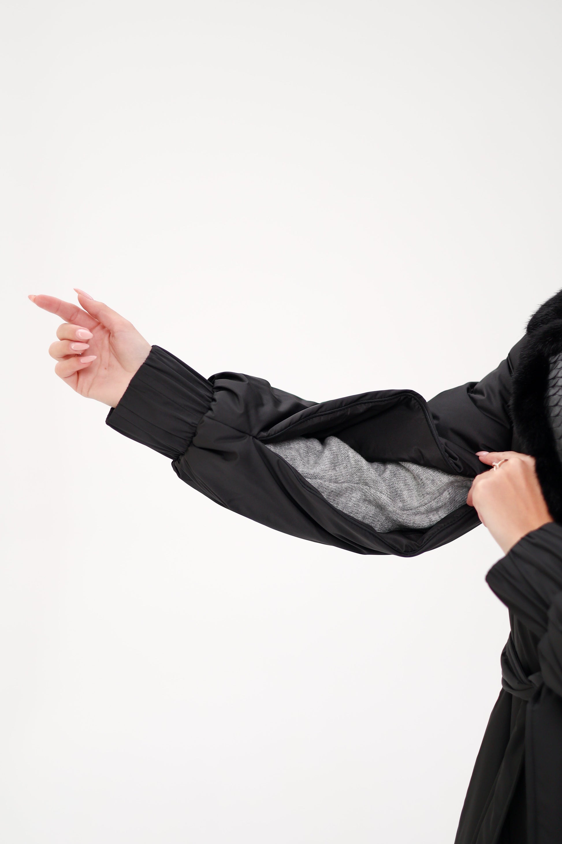 Experience unparalleled elegance with this exquisite coat, meticulously crafted with genuine python leather trim and adorned with luxurious mink fur. The exotic python leather detailing adds a striking, unique touch to the sophisticated design, while the mink fur trim offers an additional layer of warmth and refinement. This coat is the epitome of timeless luxury, combining premium materials for an extraordinary look and feel that will make a statement in any setting.