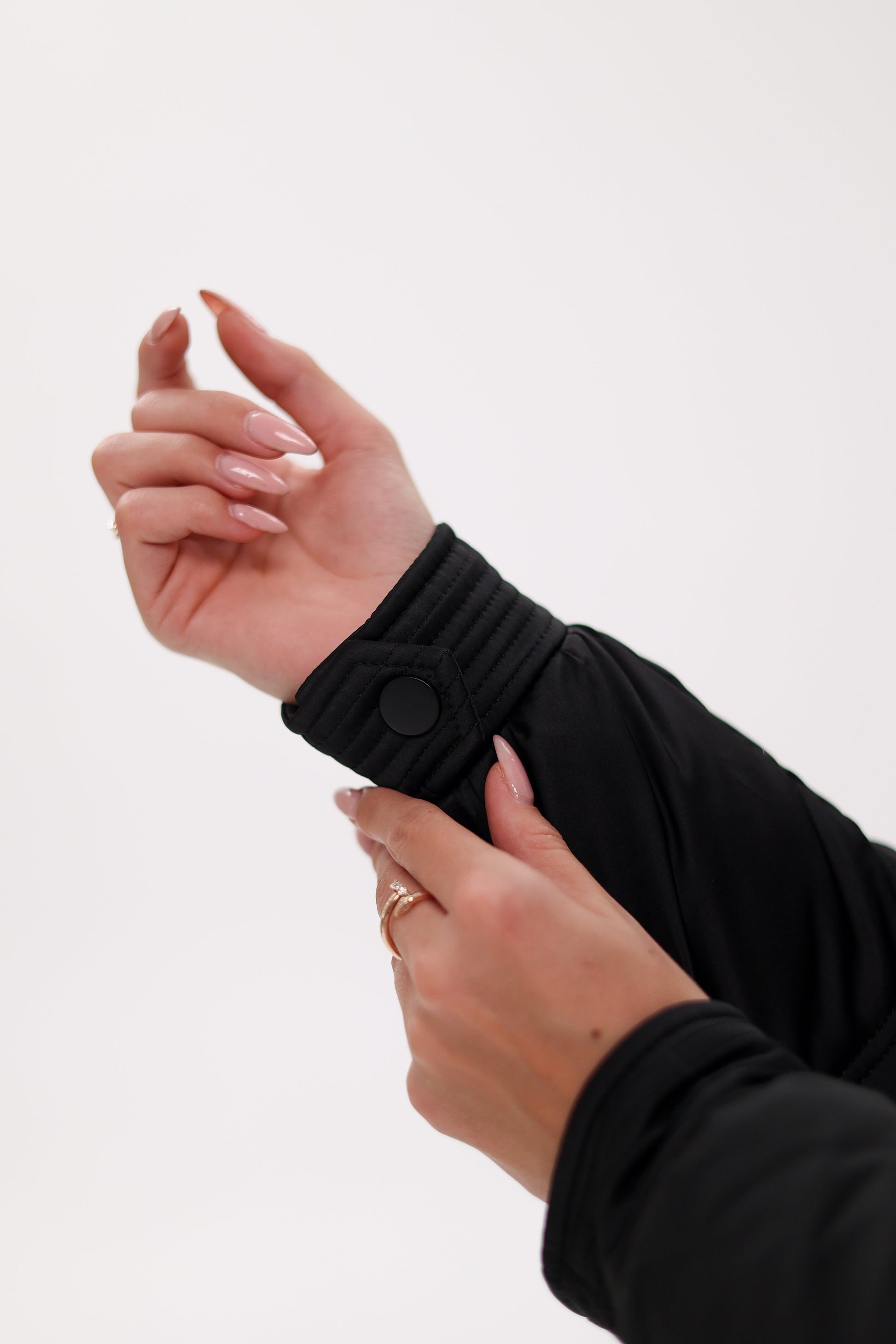 • Storm flap with snap closure that blocks wind and wet