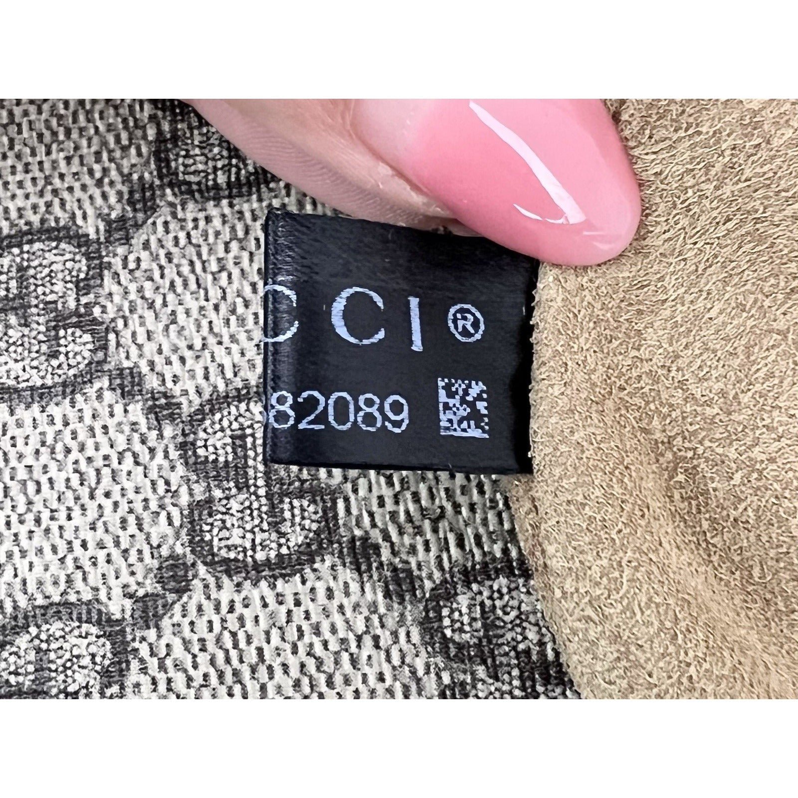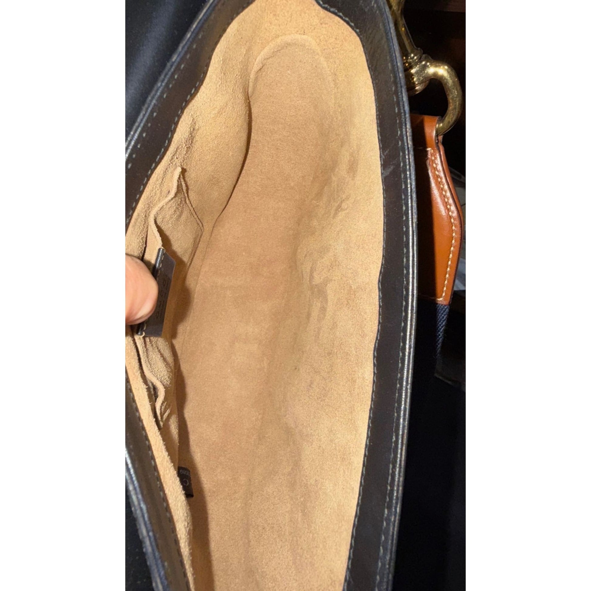 INTERIOR: tan microfiber, 1 open pocket, couple small marks, inside leather