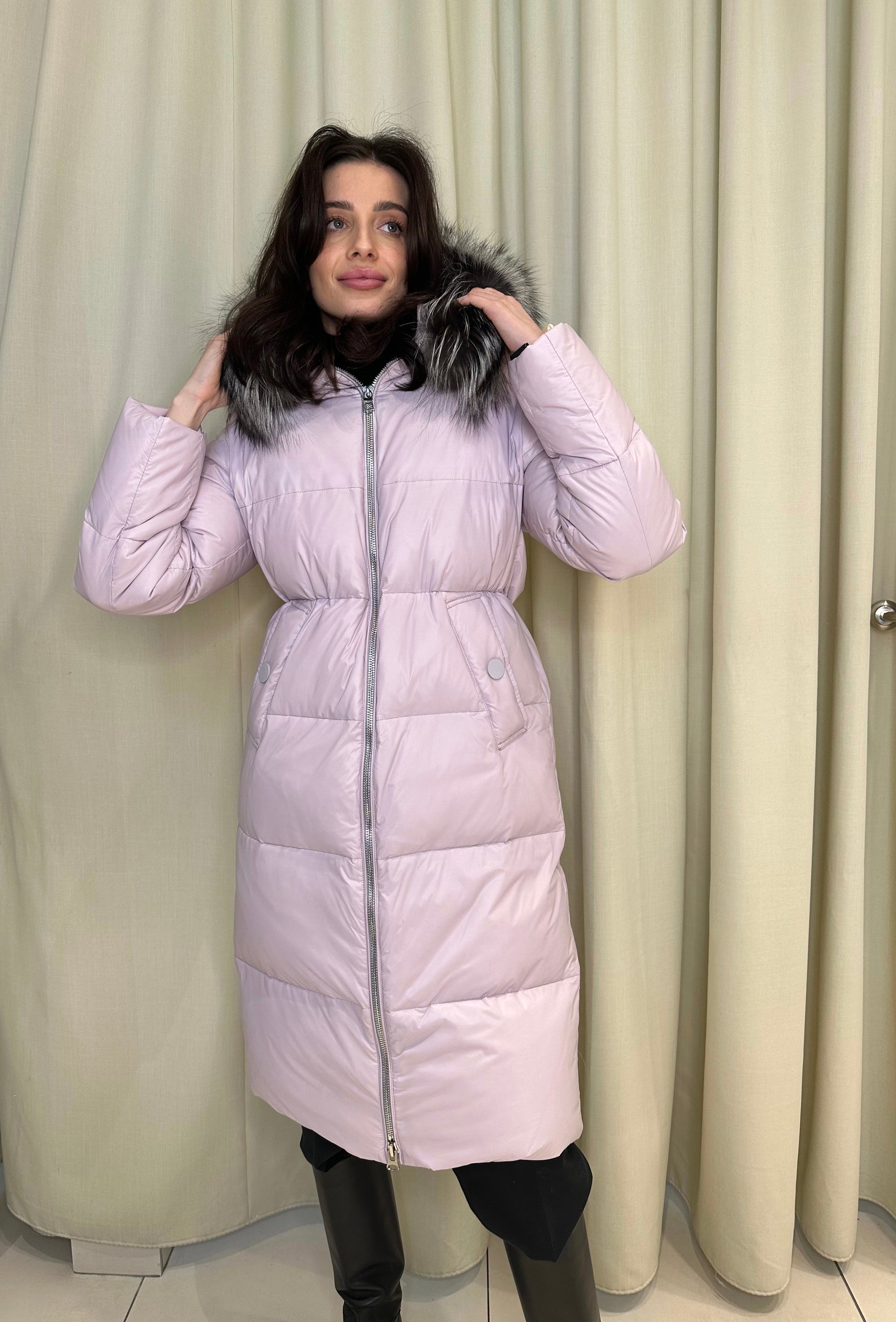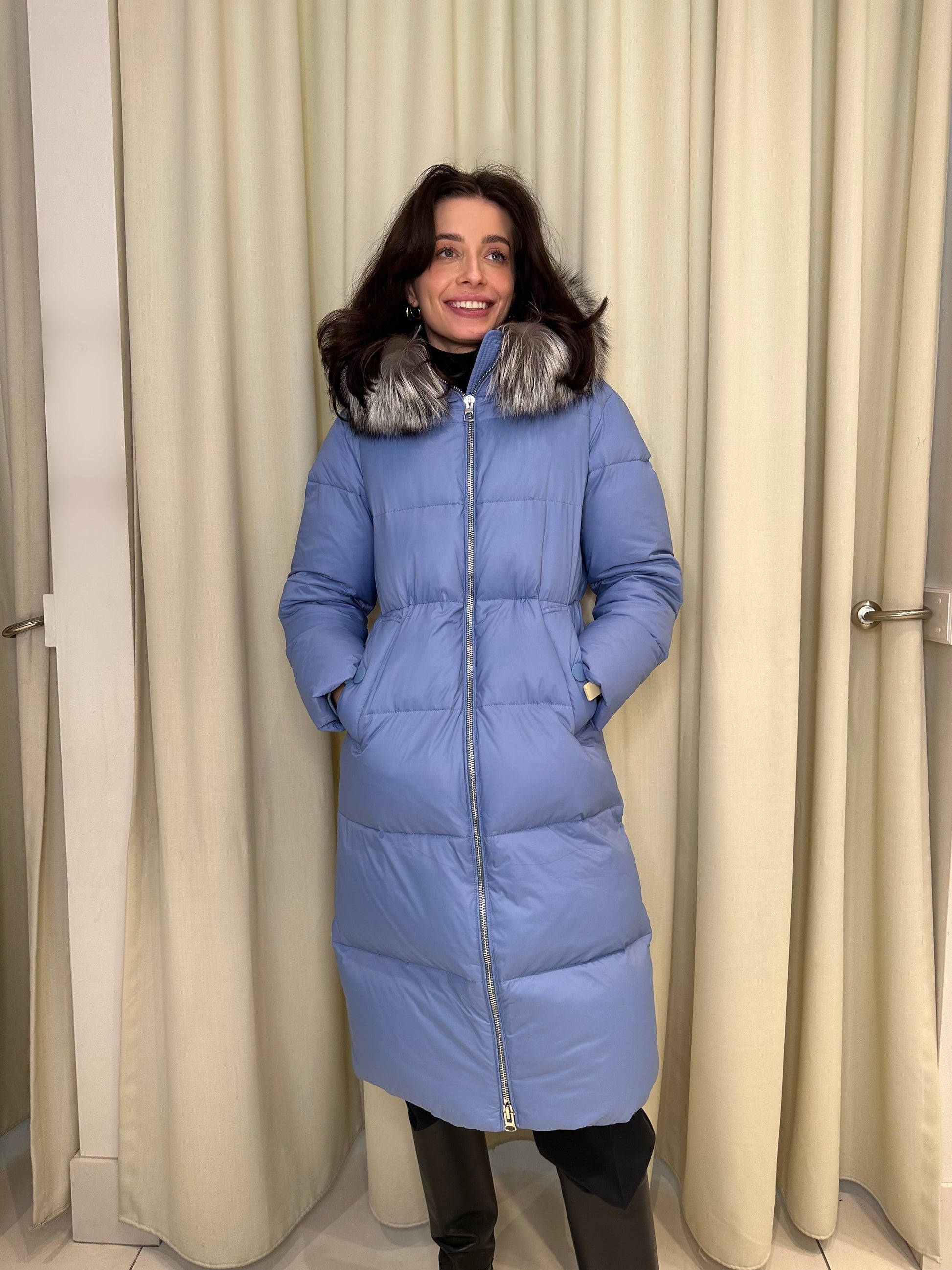 Mirabelle Genuine Silver Fox Fur Down Fill Coat