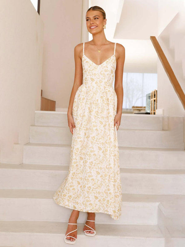 Modern V-neck waist holiday long dress sexy backless bow tie dress