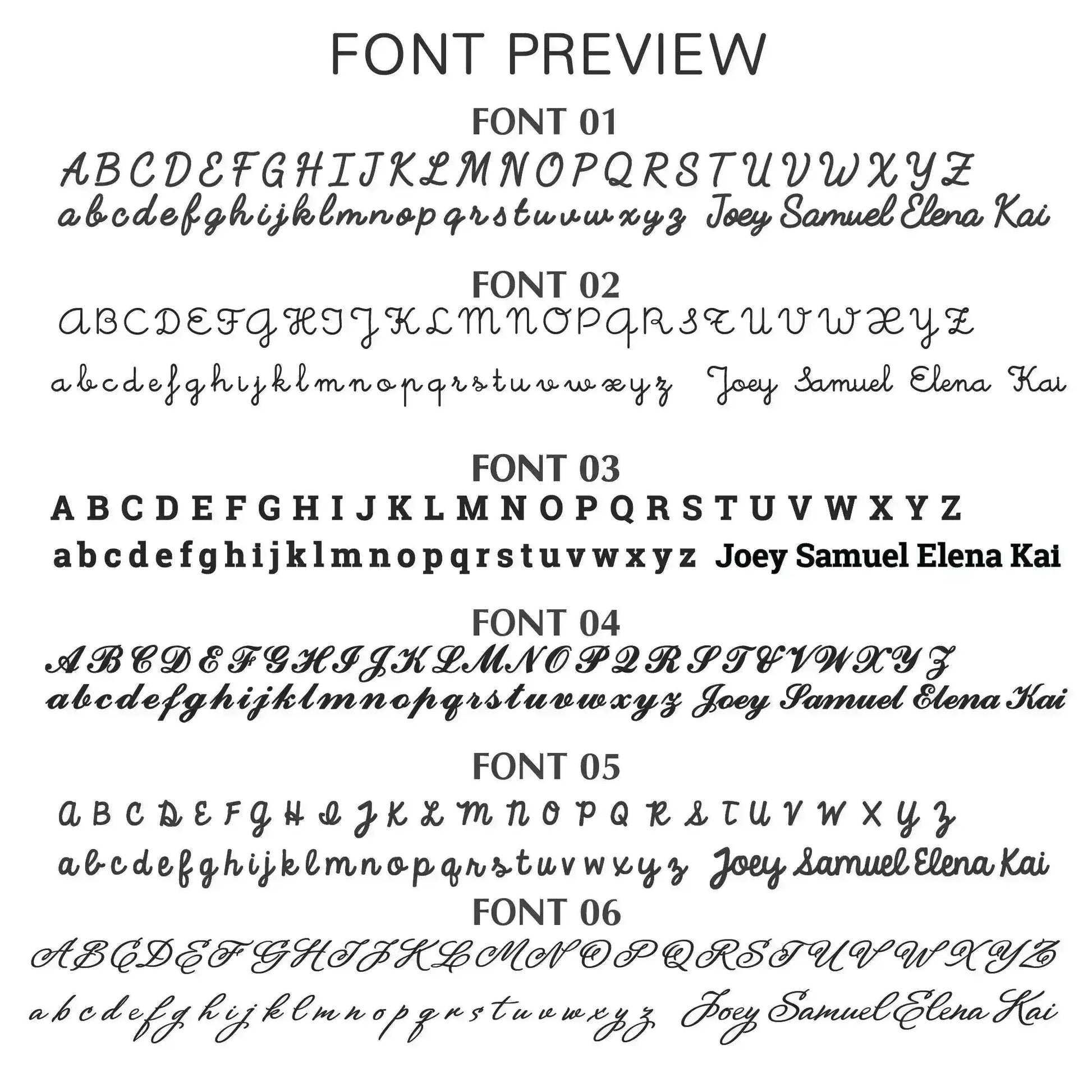 • Word limits: 3-5 characters/name, up to 4 names/bracelet.