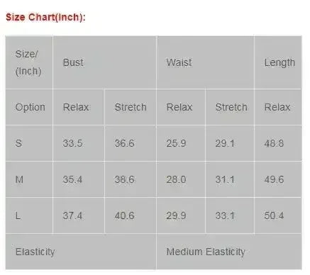 | Size/ (Inch) | Bust | Waist | Length | ||