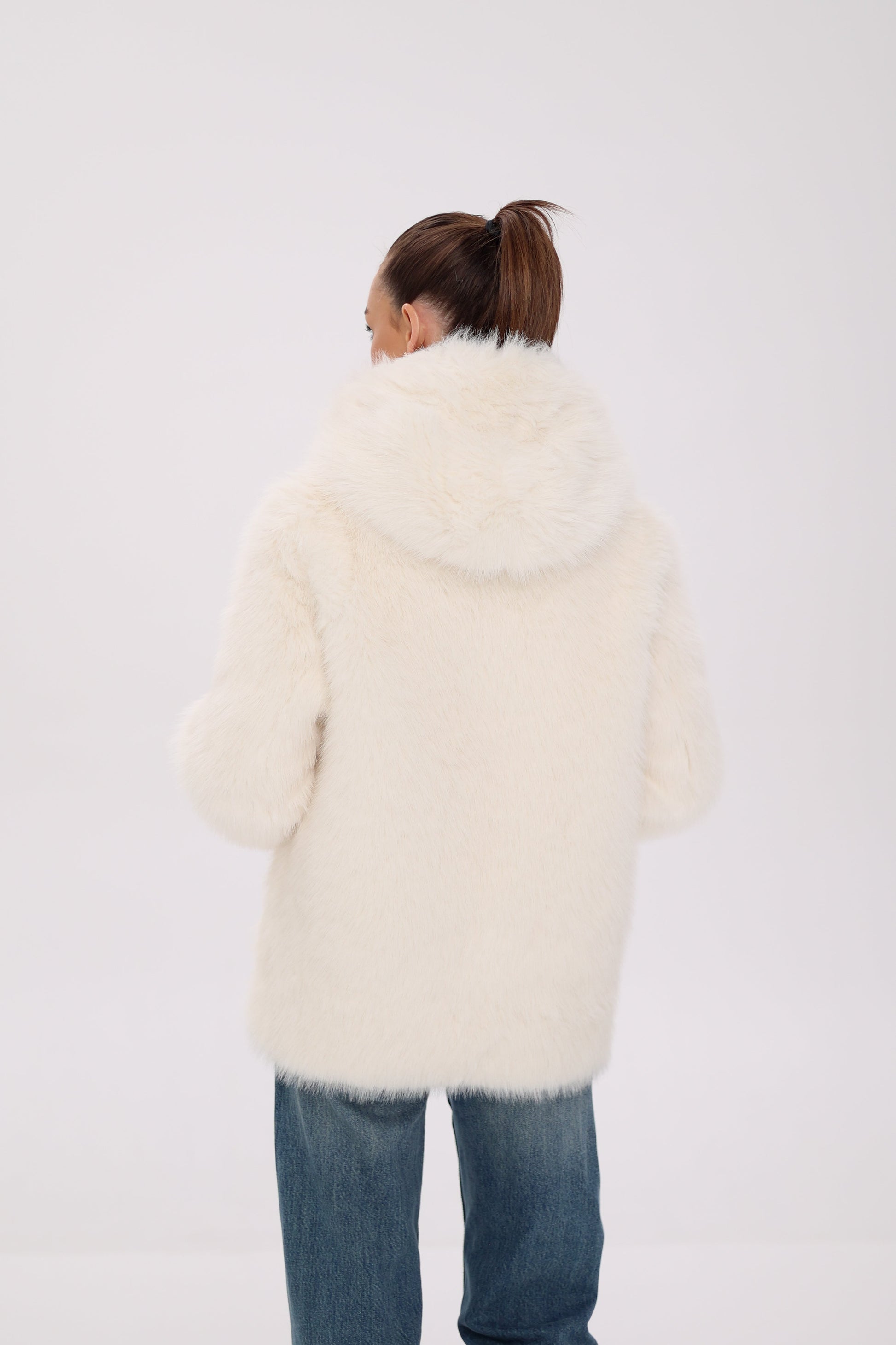 This hip-length reversible jacket combines eco-suede and wool blend, offering two looks in one. The eco-suede provides a sleek soft-to-the-touch finish, while the cozy layer of wool blend adds warmth and texture. With its versatile design, this jacket is perfect for transitioning between casual and sophisticated styles, making it a practical yet luxurious addition to any wardrobe.