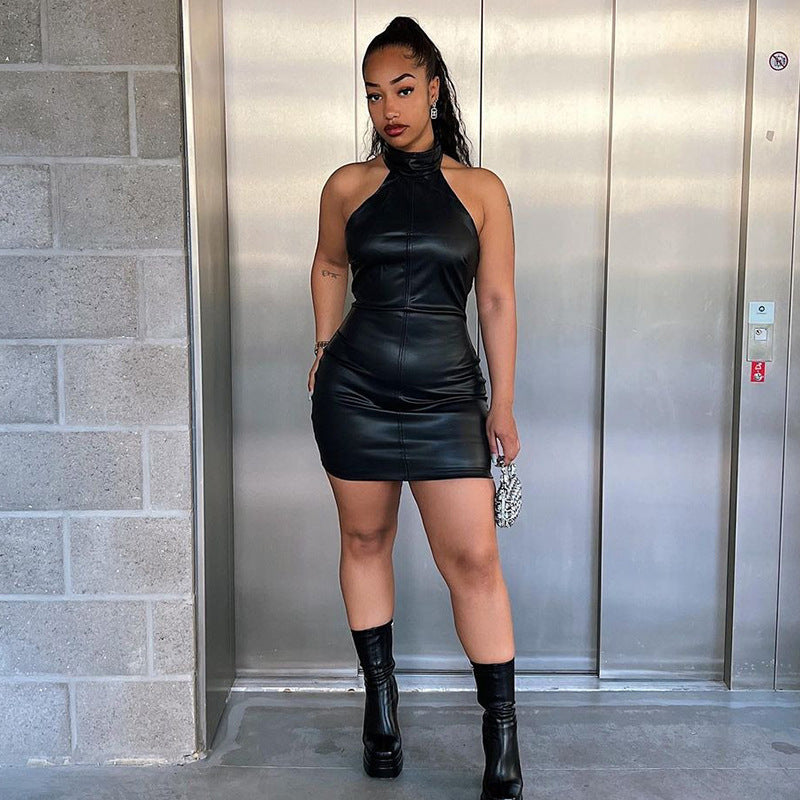 Stand Collar Sleeveless Waist Sheath Sexy Women Dress