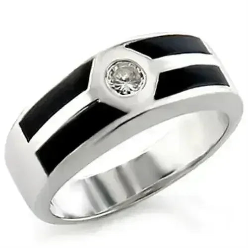 14034 Rhodium Brass Ring – AAA Clear CZ Solitaire (Classic Sparkle)