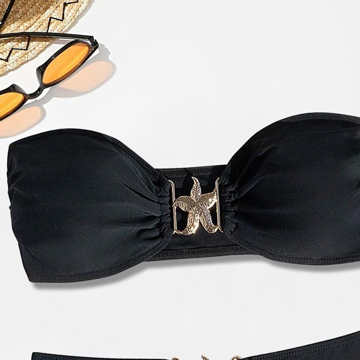 Bikini Swimsuit Split Tube Top Solid Color Bikini High Waist Sexy Swimsuit