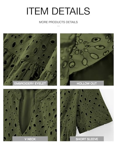 - FEATURES: Hollow Out Short Dress / Casual V Neck Dress / Short Sleeve Dresses / Embroidery Eyelet / Tiered / Flowy A-Line Dresses / Mini Dress