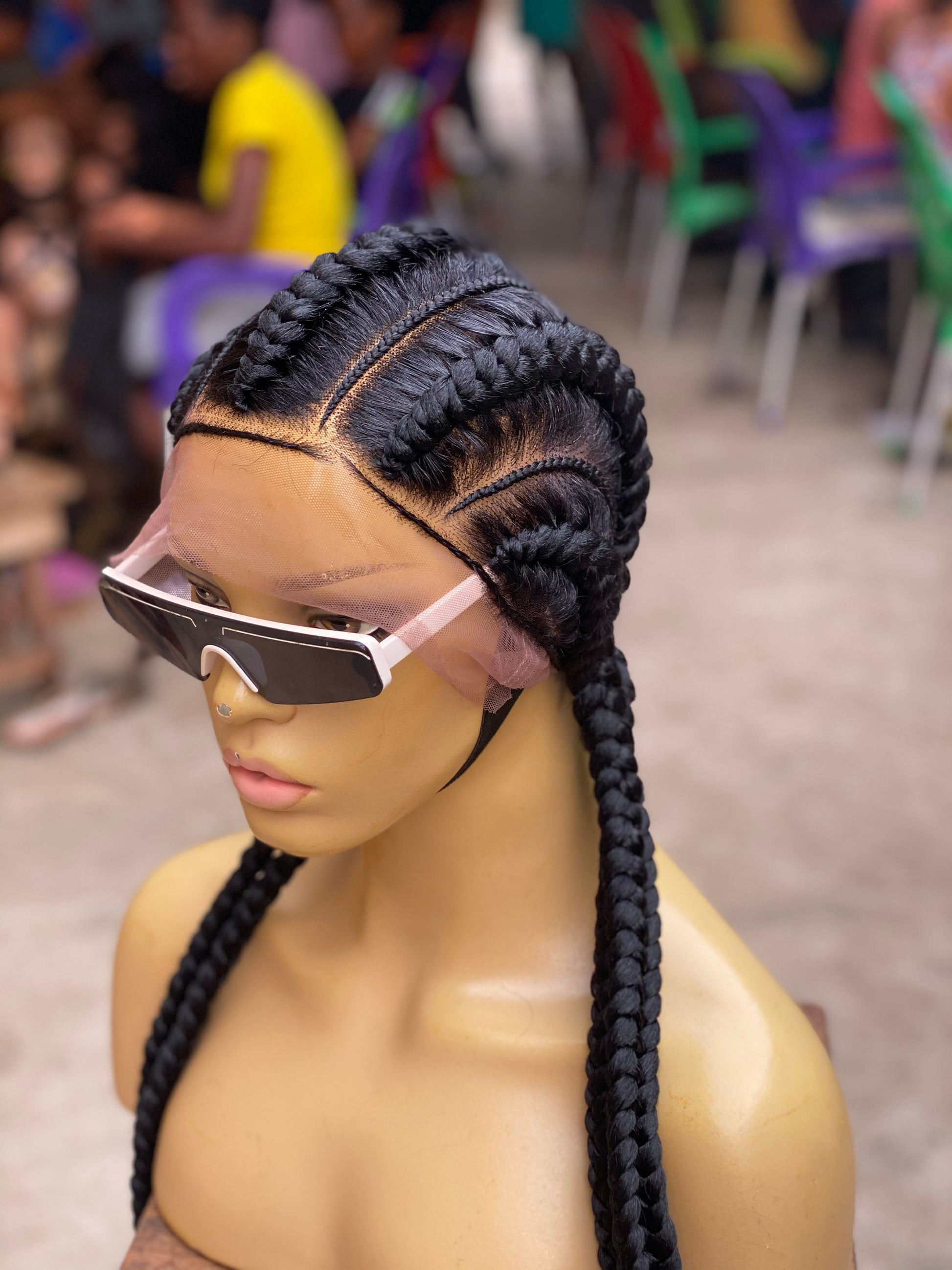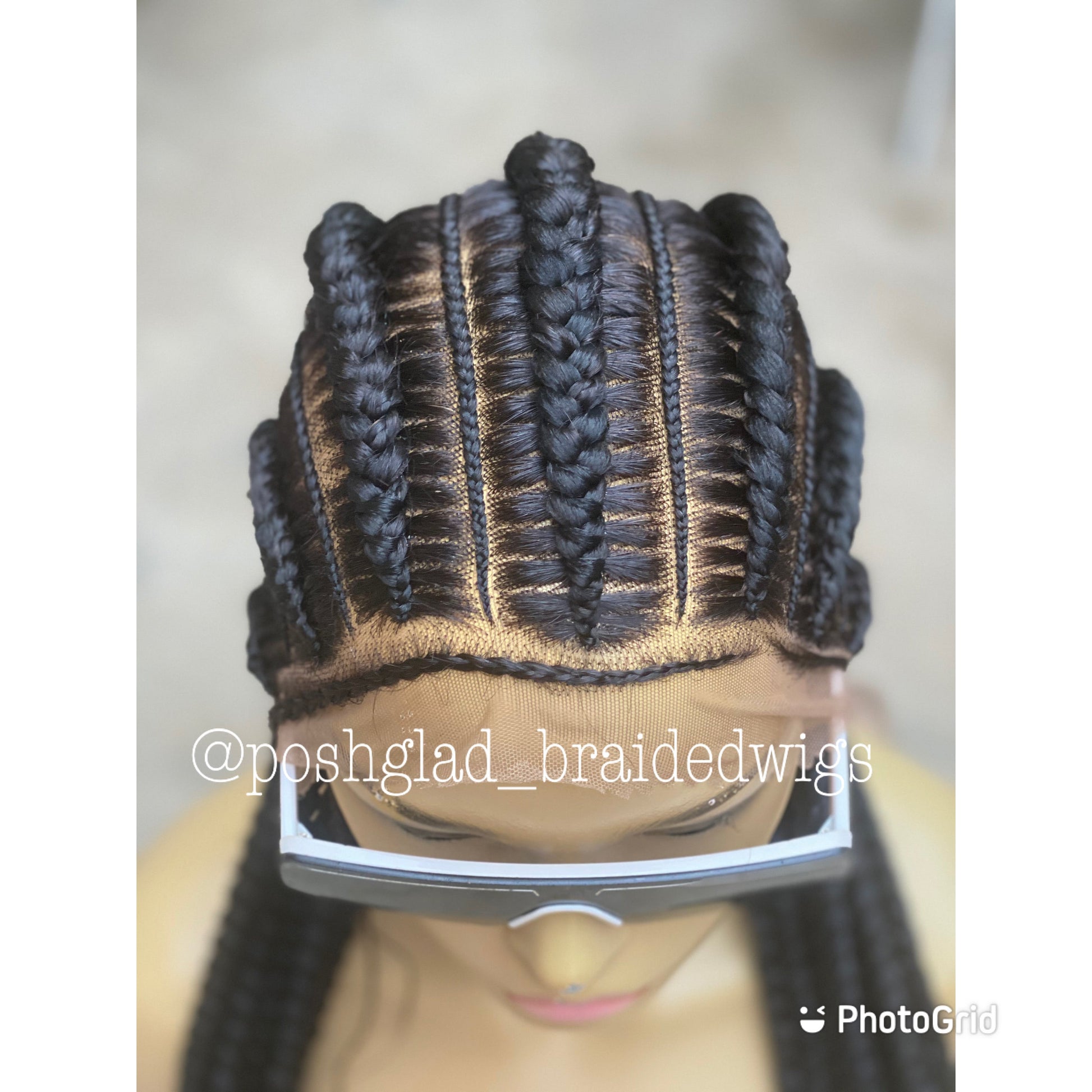 This unit is a custom handmade glueless feed-in braids wig with selective custom options.