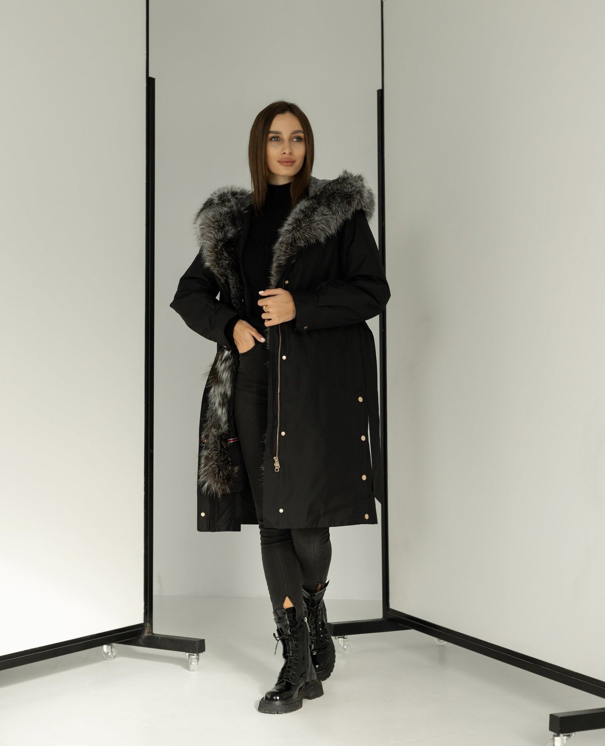 - Trim: genuine Silver Fox fur