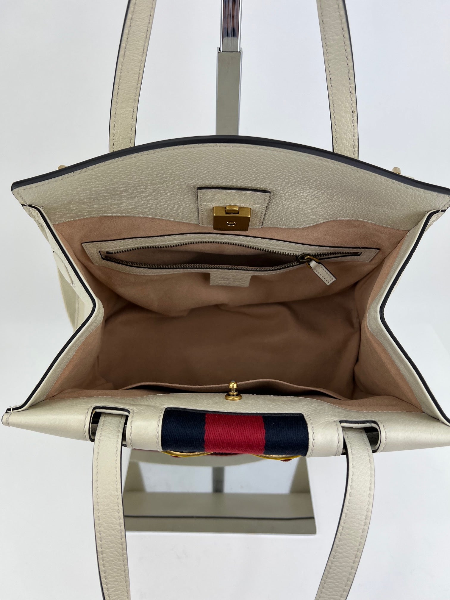GUCCI Linea Medium Totem Web Stripped Yellow Butterfly Top Handle Bag Preowned