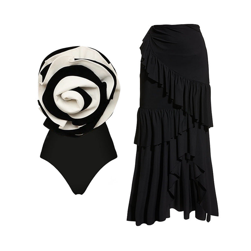 High Quality Handmade Big Floral One Piece Swimsuit Women Beach Vacation Suit