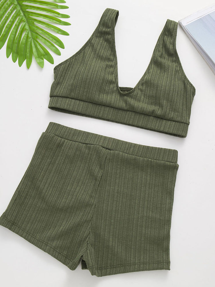 High Waist Bikini Set Solid Swimsuit Women Push Up Bathing Suits Swimwear
