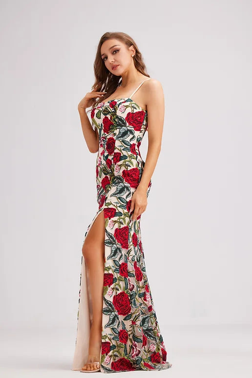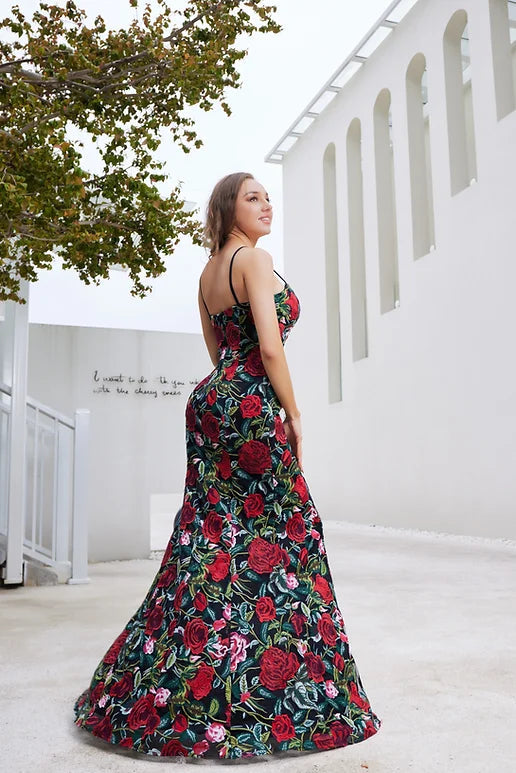 Effortlessly elegant, this J23029 dress is a work of art. Its straight-line ball gown silhouette is enhanced by delicate spaghetti straps, creating a stunning prom look. The black/multi and nude/multi color combination adds a touch of sophistication. Perfect for a luxurious evening event.