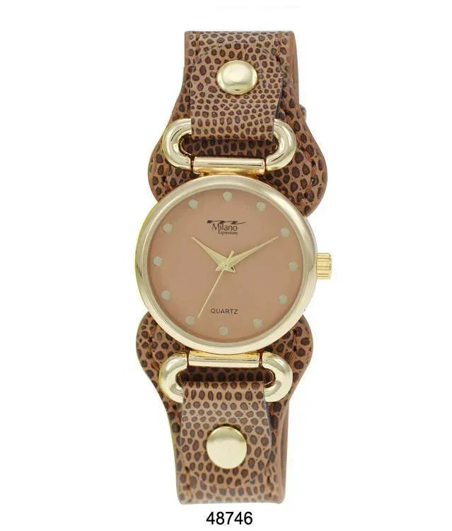 Movement: AnalogBrand: M MILANO EXPRESSIONSCase Material: MetalBand Material: Vegan LeatherWarranty: 1 Year Limited WarrantyFamily Name: W LB Fancy