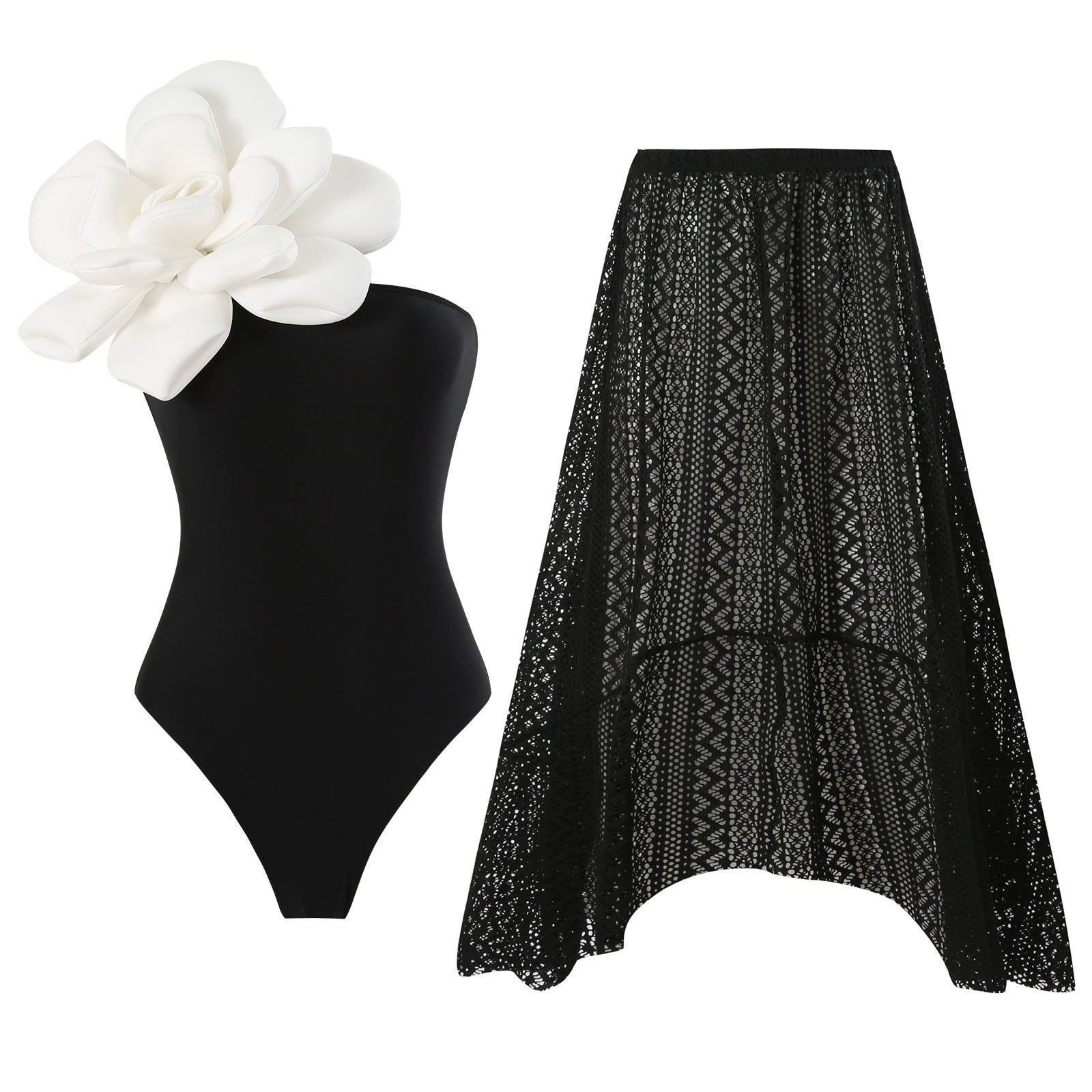 One Piece Swimsuit Women Skinny Slimming Big Floral Swimsuit Outfit Chiffon Dress