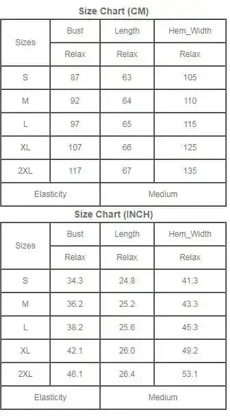 | Sizes | Bust | Length |