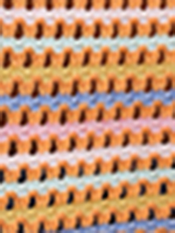 Paneled Hollow Knit Loose Crew Neck Striped Knit Sweater