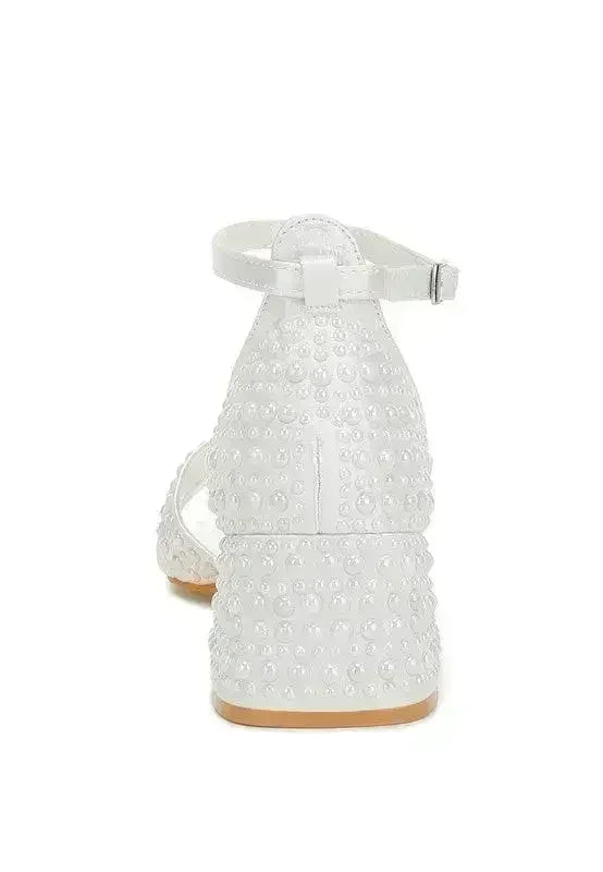 Pearl Bridal Sandals - Low Heel Satin Shoes - Wedding Party Comfort