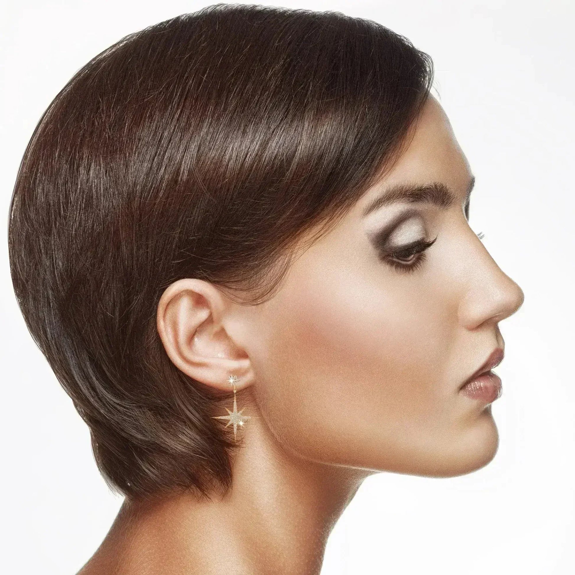 Petite Star Burst Drop Earrings | Gold CZ Celestial Jewelry - Femstylo