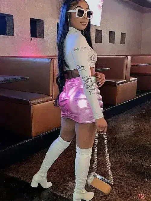 - Miniskirt Filled with soft fabric in front, back is stretchy for better fit.Metallic shiny appearance skirt for women, zipper closure on the back, easy to put on and take off.