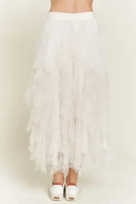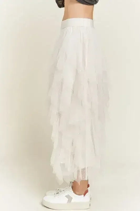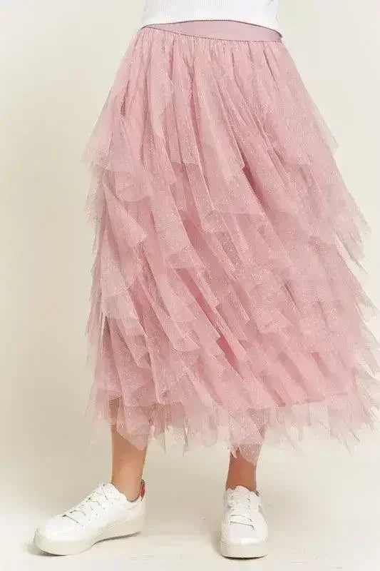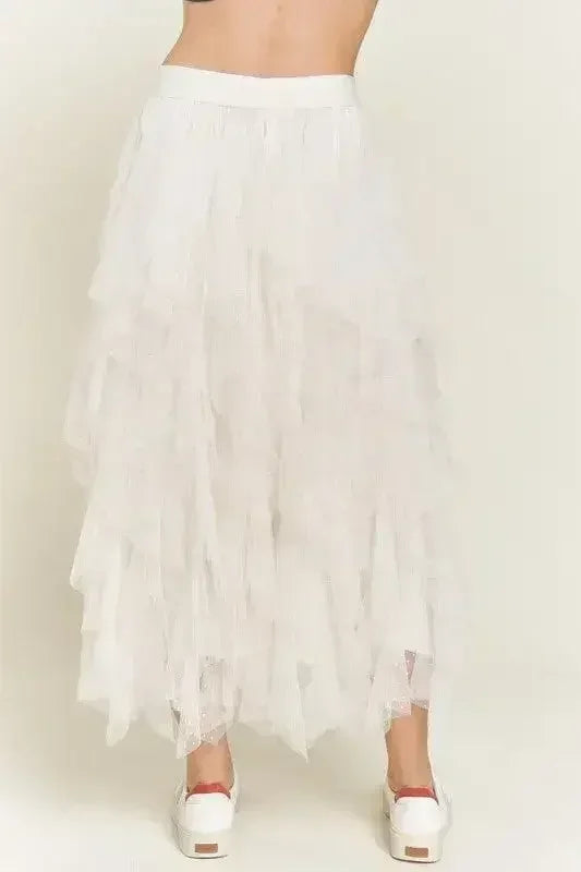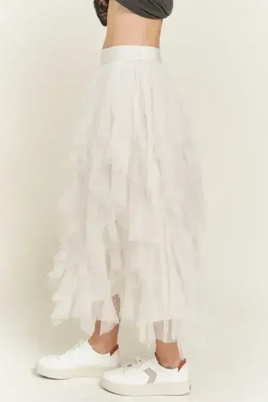 PLUS SIZE LAYERED POLKA DOT MESH LINED A-LINE MIDI SKIRT