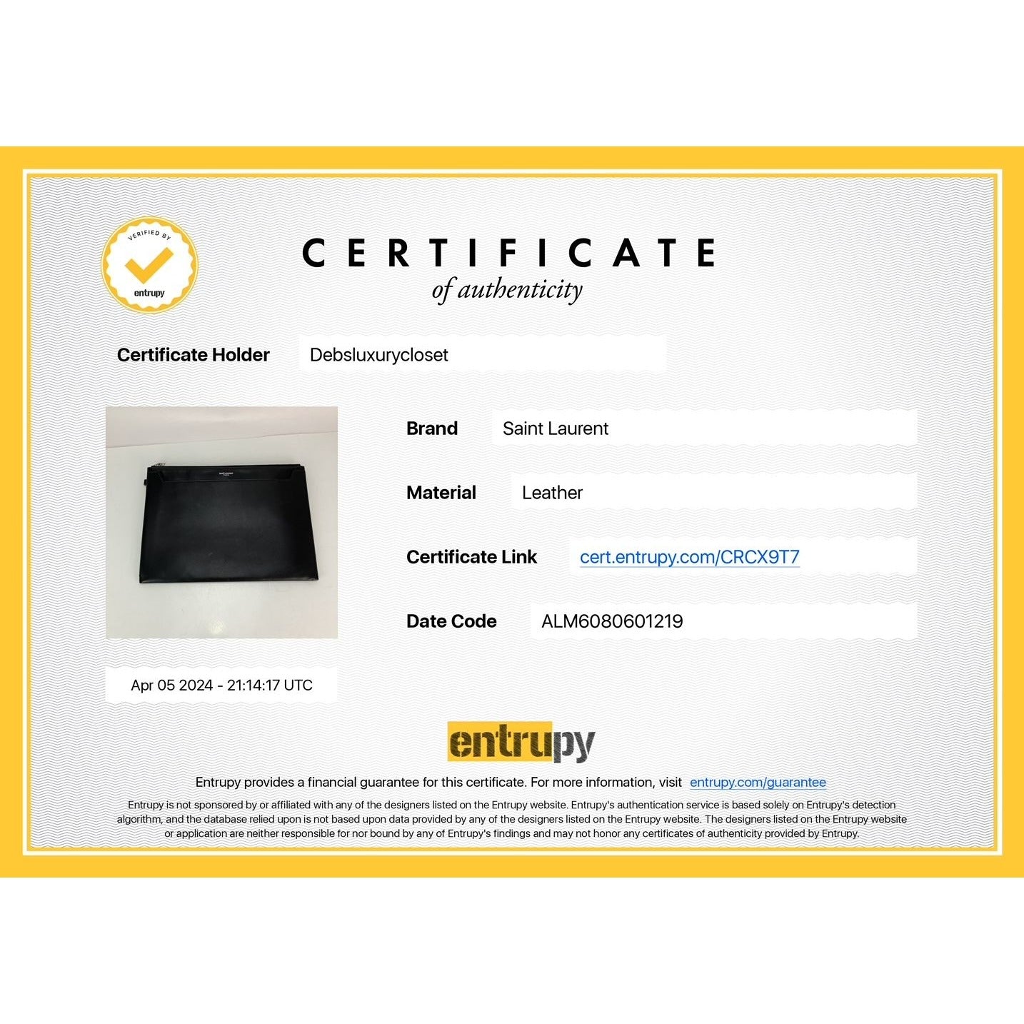 INCLUDED: *YSL tags + booklets*YSL dust rag*YSL