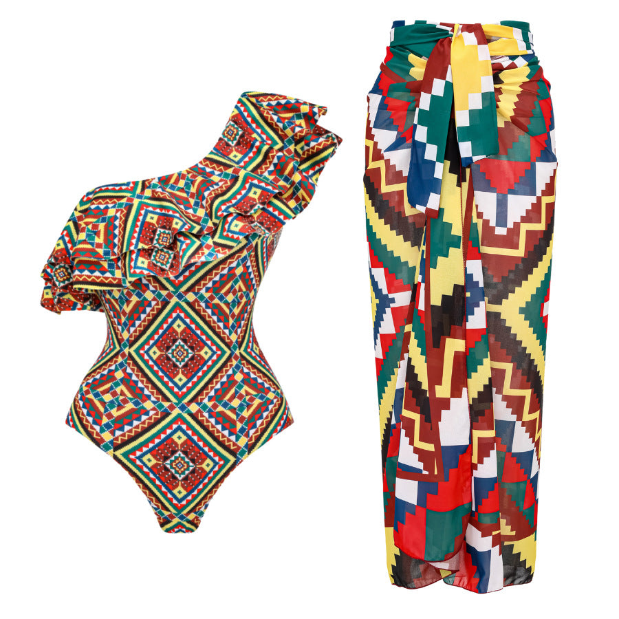 Sexy One Piece Swimsuit Women Bikini Ruffled Printed Swimsuit Chiffon Dress