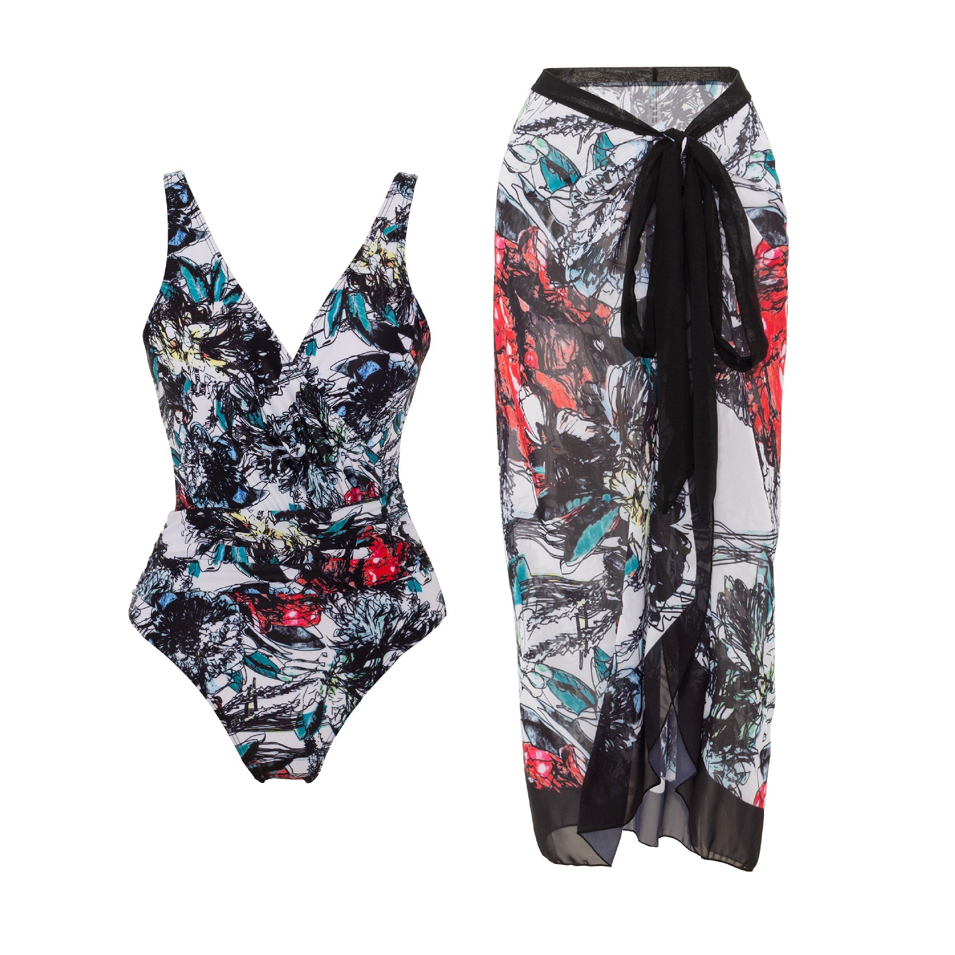 Siamese Conservative Cover Belly Backless Sexy plus Size Swimsuit Women Chiffon Beach Dress