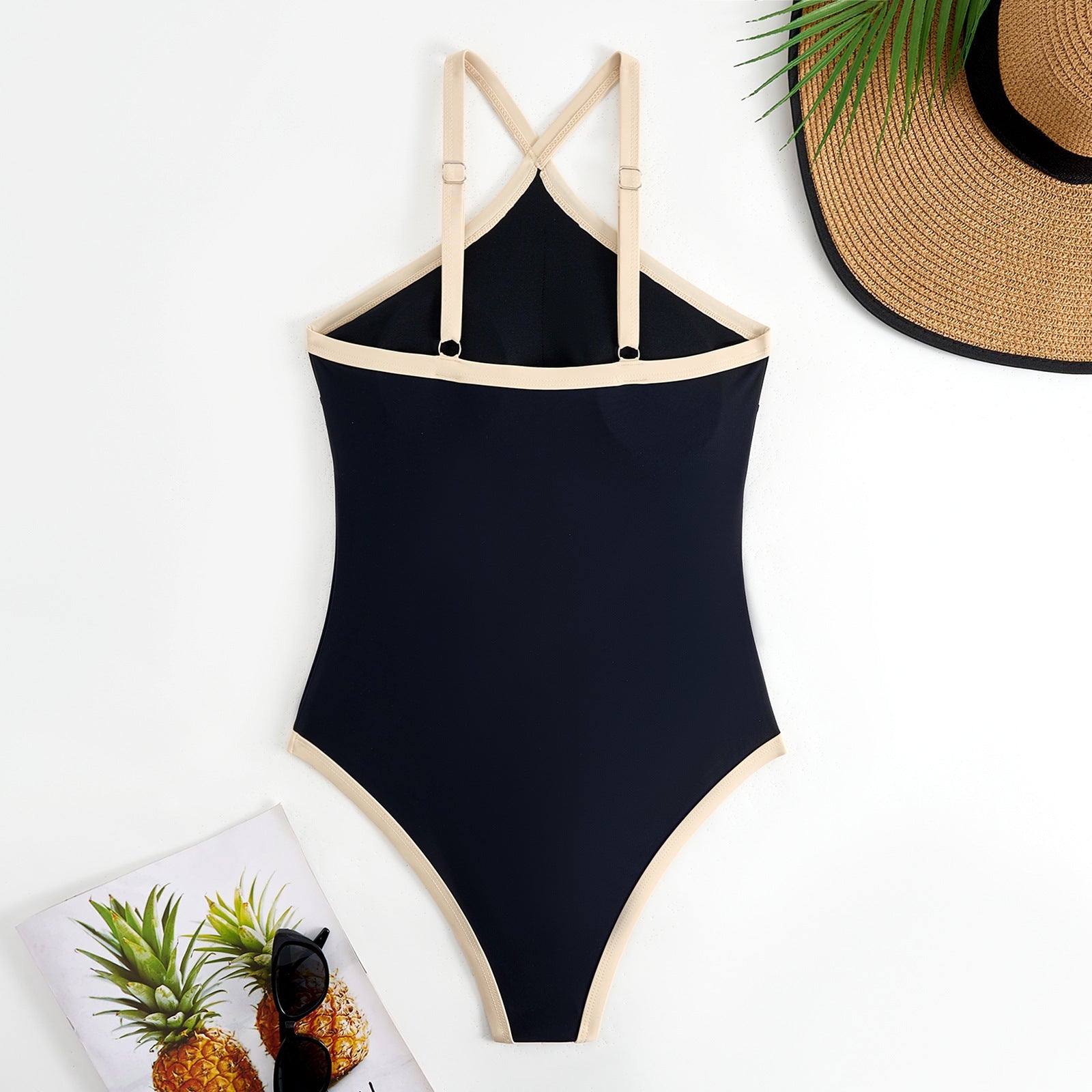 Slim Fit Sexy Siamese Triangle Swimwear Women Solid Color Halter Swimsuit