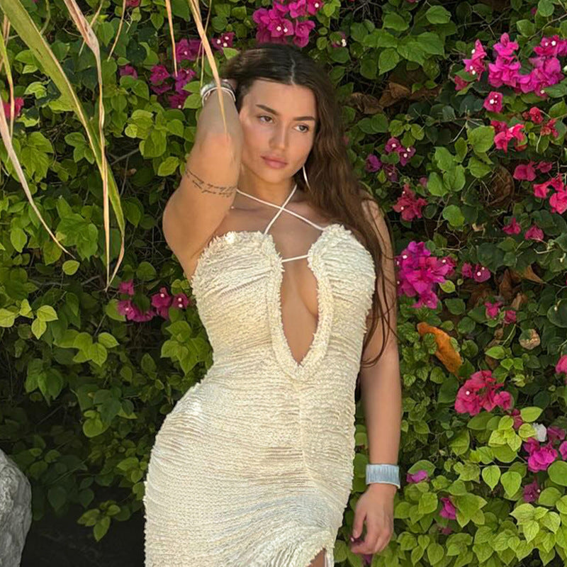 Summer Type Hip Elegant Sexy Mechanism Hollow Out Cutout Split Dress Women