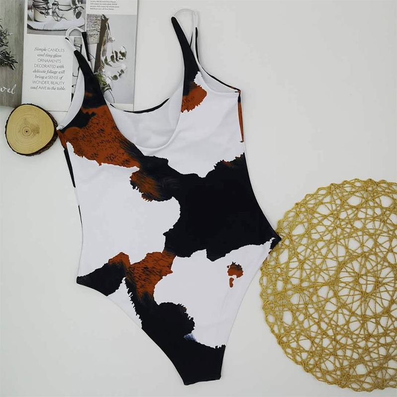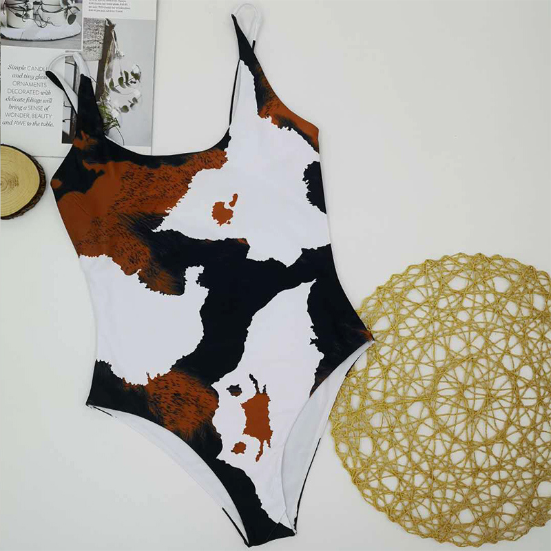 Summer Vintage print swimsuit Sexy high cut bodysuit one piece suits Swimwear women Monokini Beach wear