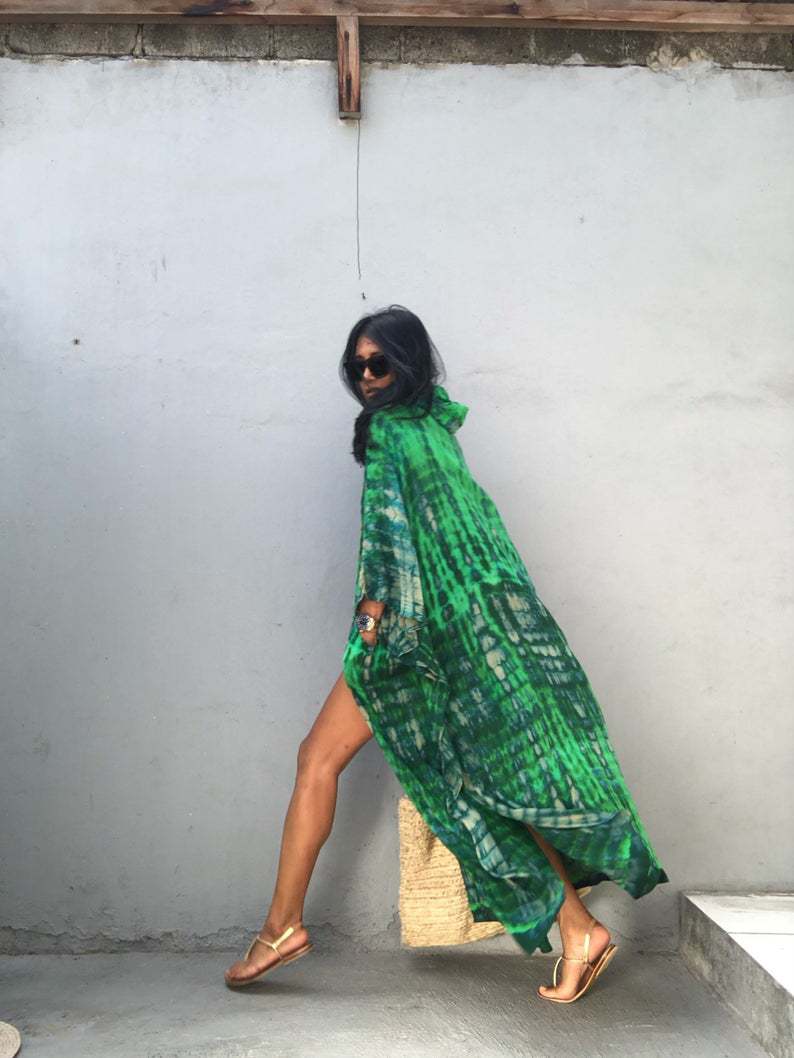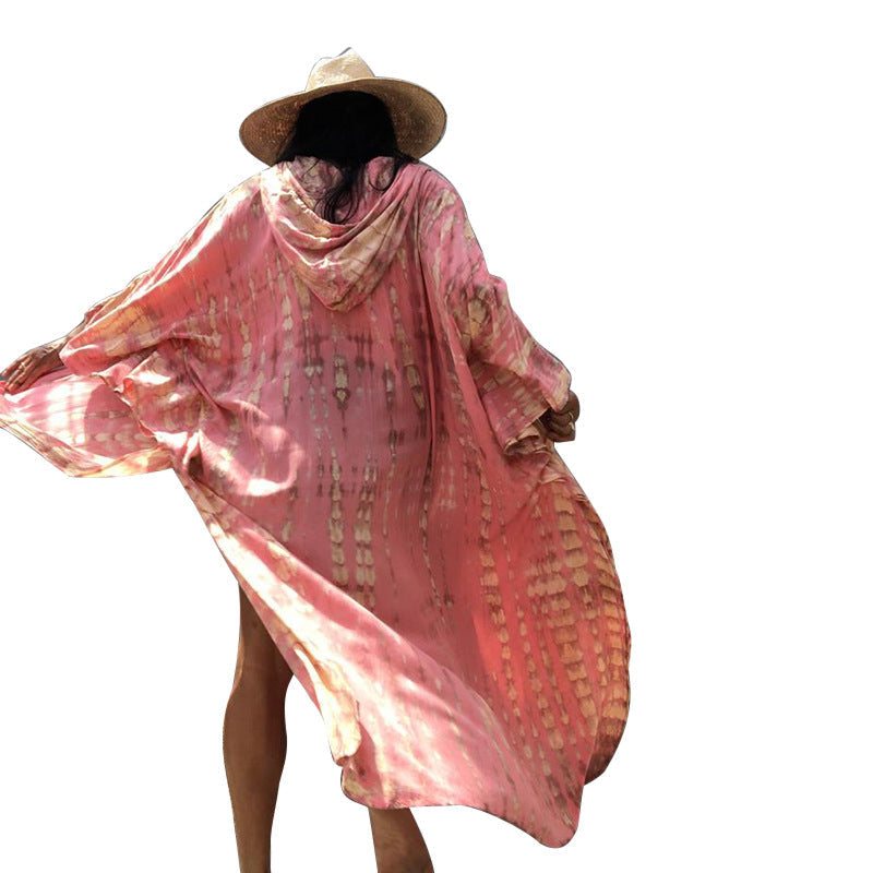 Sunscreen Cardigan Hooded Printed Long Sleeve Long Beach Vacation Swimsuit Outwear Blouse