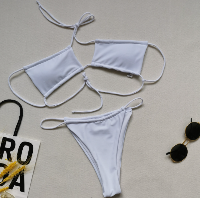 Swimsuit Bikini Drawstring Push up Sexy Solid Color Women Fission Swimsuit