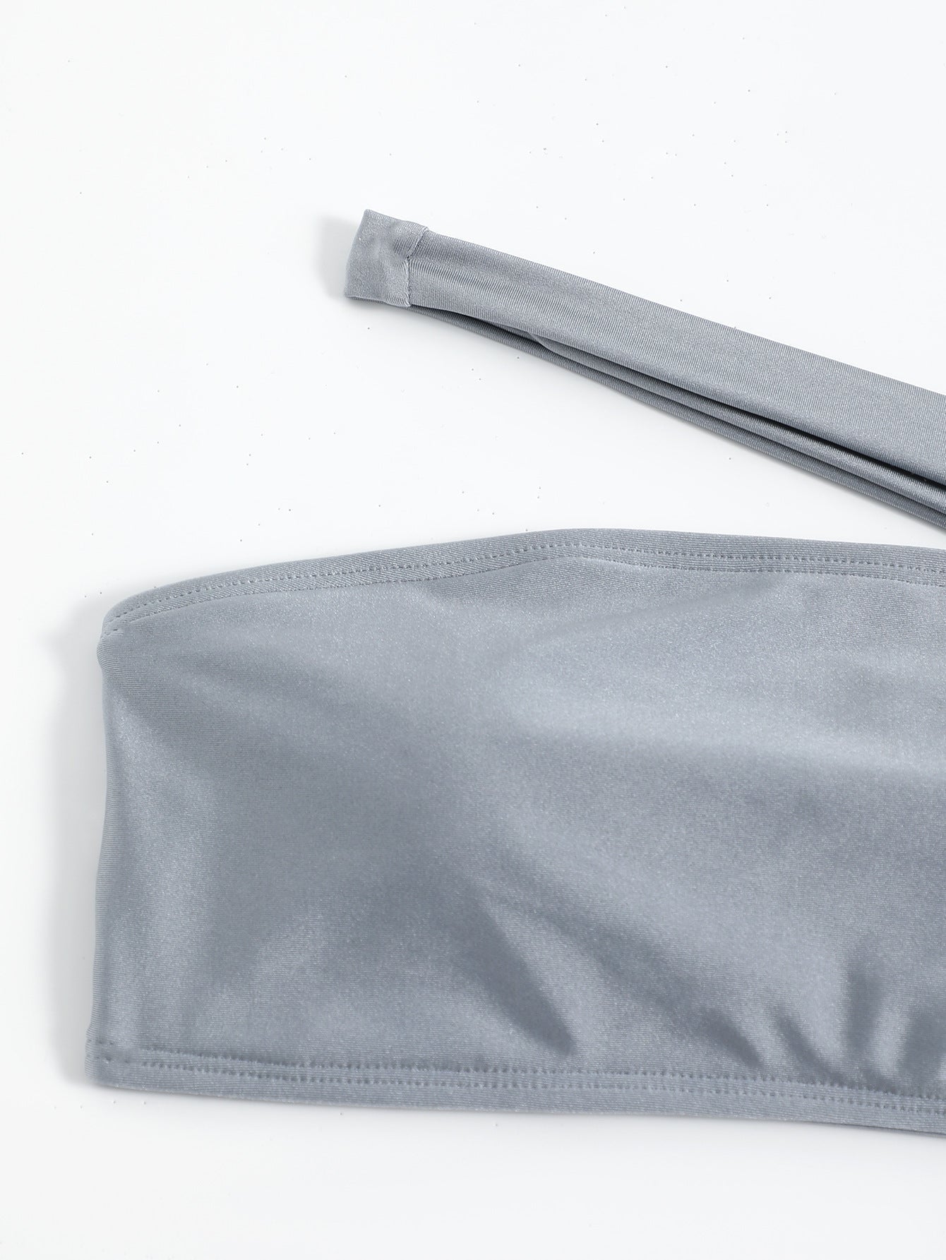 Swimsuit Women Bikini Solid Color Swimsuit Women Single Shoulder Sloping Shoulder Tube Top Bikini