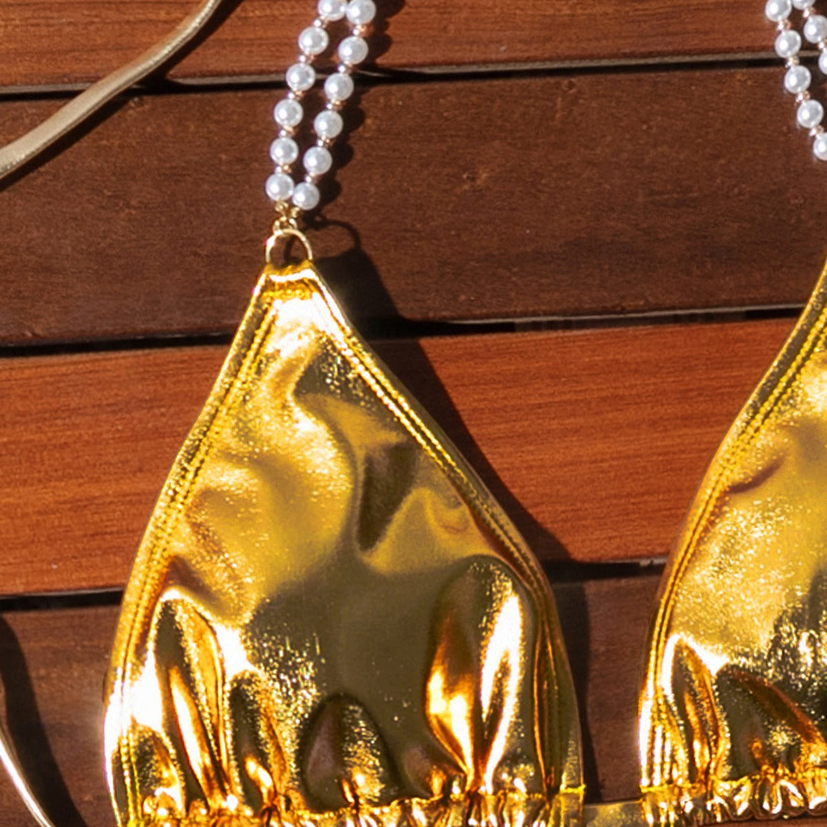 Swimsuit Women Sexy Backless Halter Lace up Bikini Golden Swimsuit