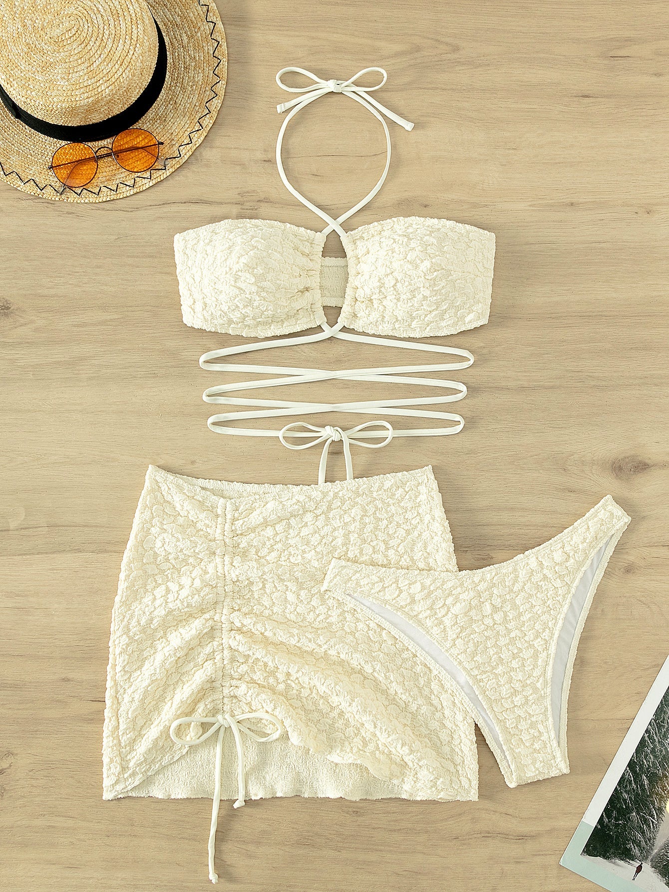 Swimwear Sexy Bikini Three Piece Halter Strap White Bikini Swimsuit