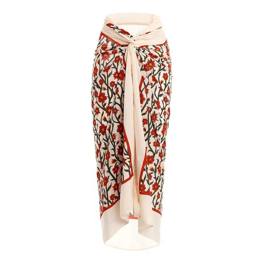 Two Piece Swimsuit Conservative Hollow Out Cutout out Tied Halter Sheath Gauze Skirt Swimsuit for Women