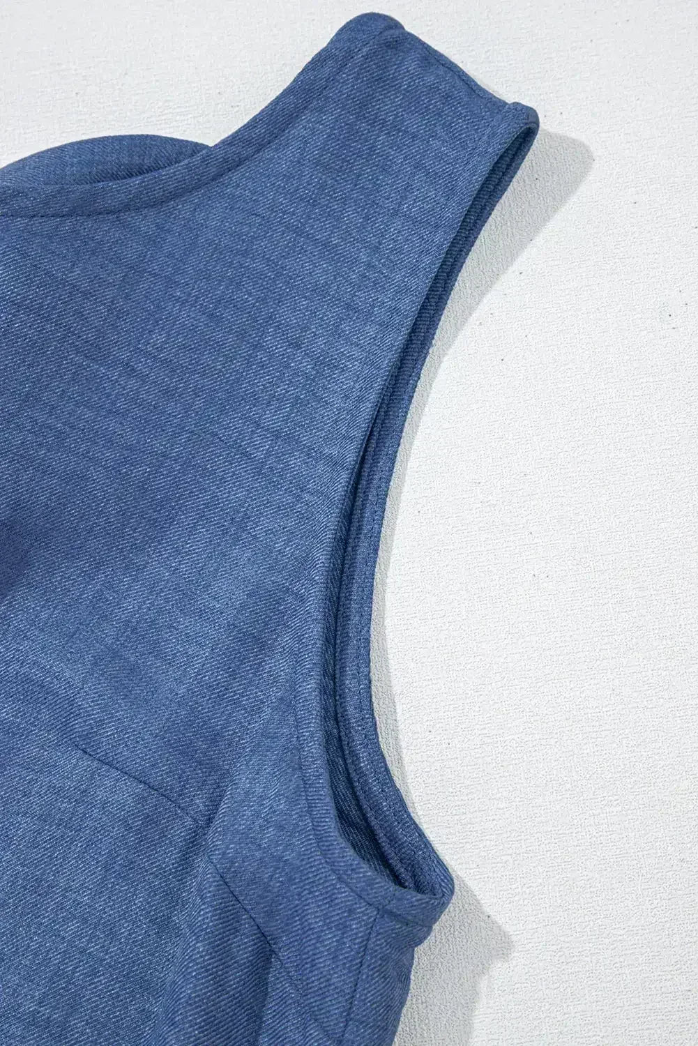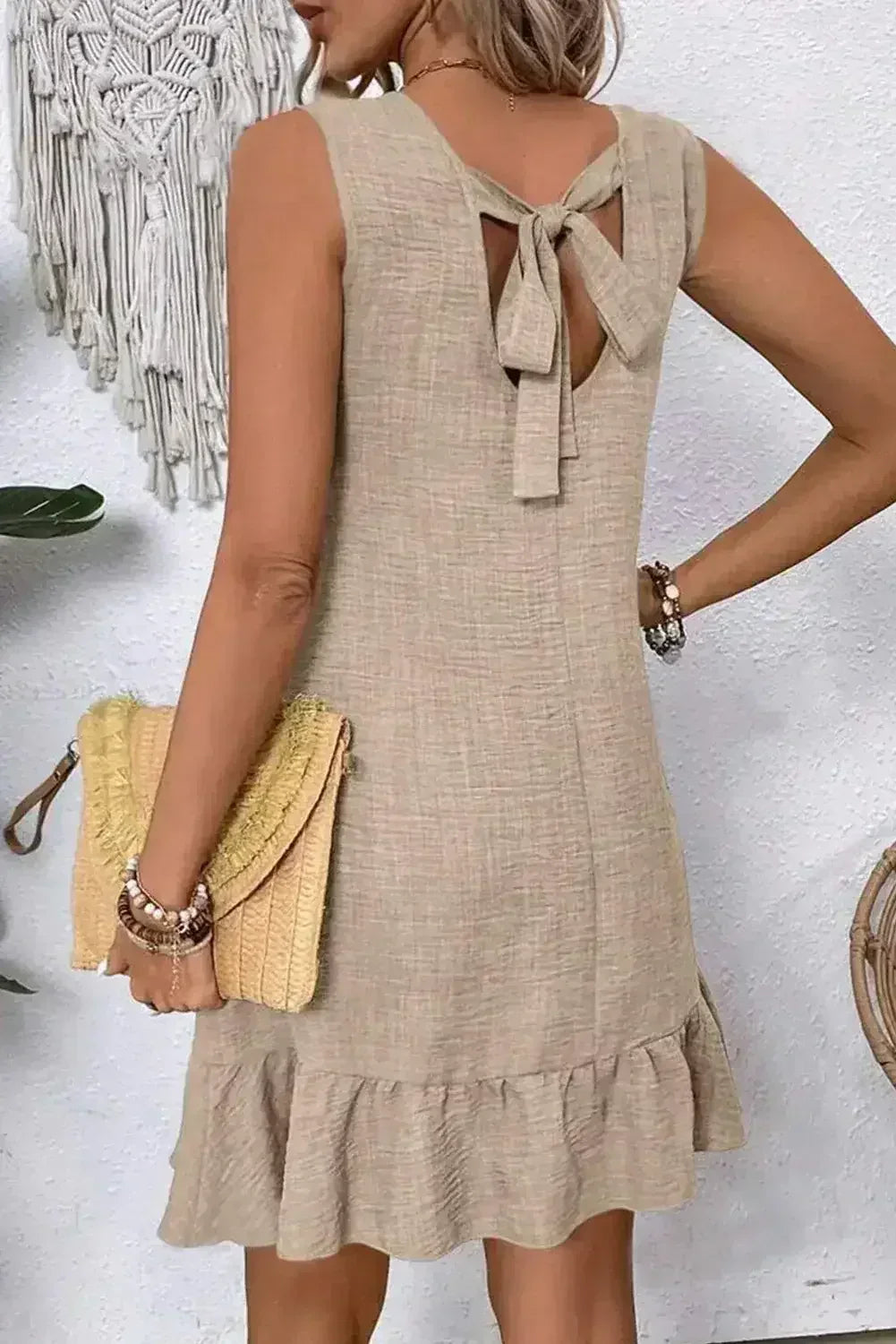 Ashleigh Blue Sleeveless Knot Backless Ruffle Hem Mini Dress